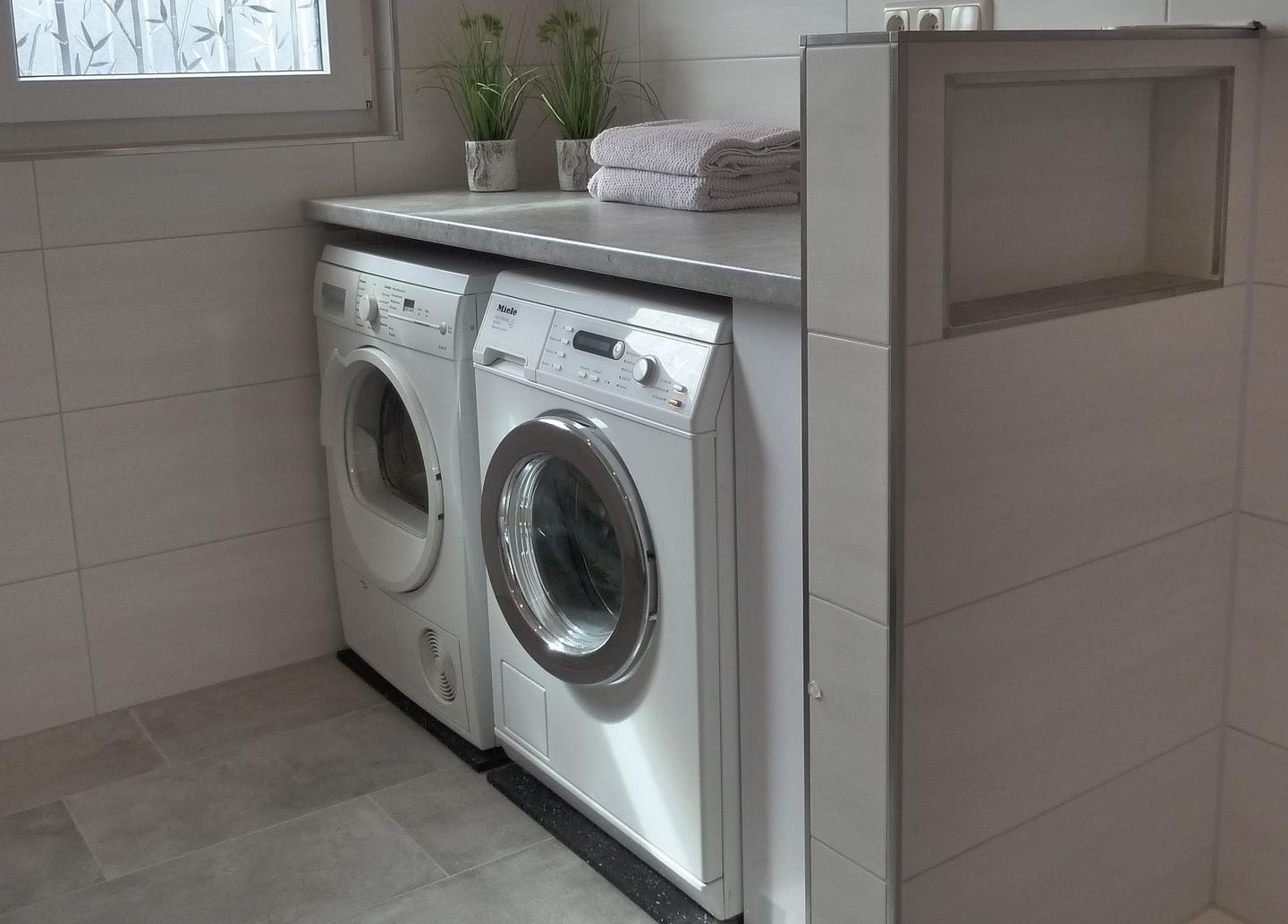 Das Tageslichtbad finden Sie modern gestaltet mit einem ebenerdigen Duscheinstieg vor. Die Dusche hat eine Größe von 90 x 160 cm. Im Badezimmer finden Sie des Weiteren eine Waschmaschine, einen Trockner, ein WC und einen Waschtisch mit Schubladenunterschrank. Hier ist jetzt eine kleine Wohlfühloase entstanden.