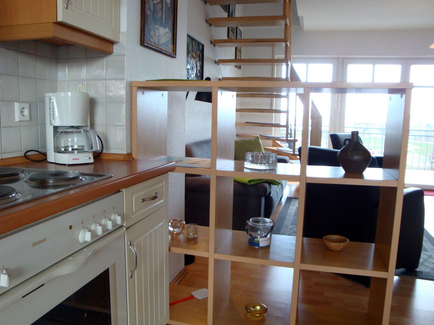 Kochbereich: offener, voll ausgestatteter Kochbereich, Geschirrspüler, Kochfeld, Mikrowelle, Backofen, Kaffeemaschine, Kühlschrank mit Gefrierfach, Eierkocher, Wasserkocher, Toaster, Mixer