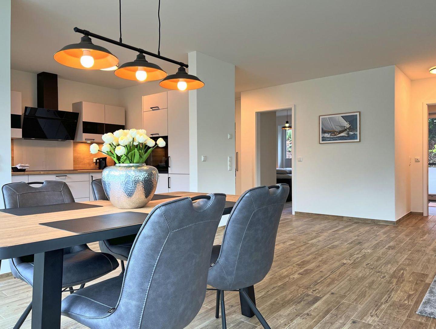 Die Wohnung 2 befindet sich im Erdgeschoss der Watt'n Villa und bietet gemütlichen Platz für bis zu 4 Personen. Die Schlafzimmer sind mit hochwertigen Boxspringbetten des Herstellers Jensen ausgestattet. Auch die restlichen Räumlichkeiten lassen keinen Wunsch offen und sind hochwertig eingerichtet.