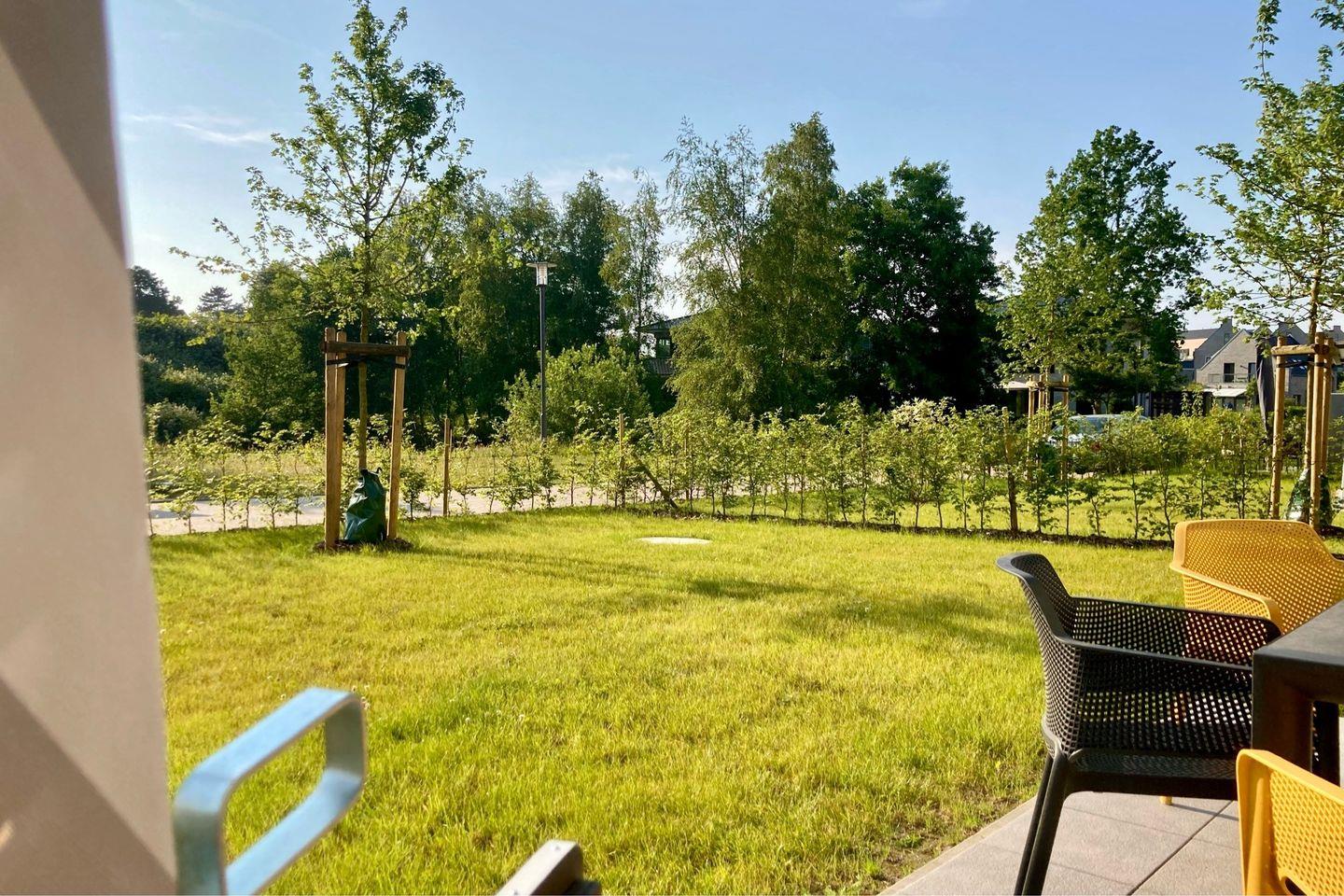 Duschbad im Erdgeschoss: bodentiefe, barrierefreie Sommerregendusche, Waschtischanlage mit Spiegel, WC