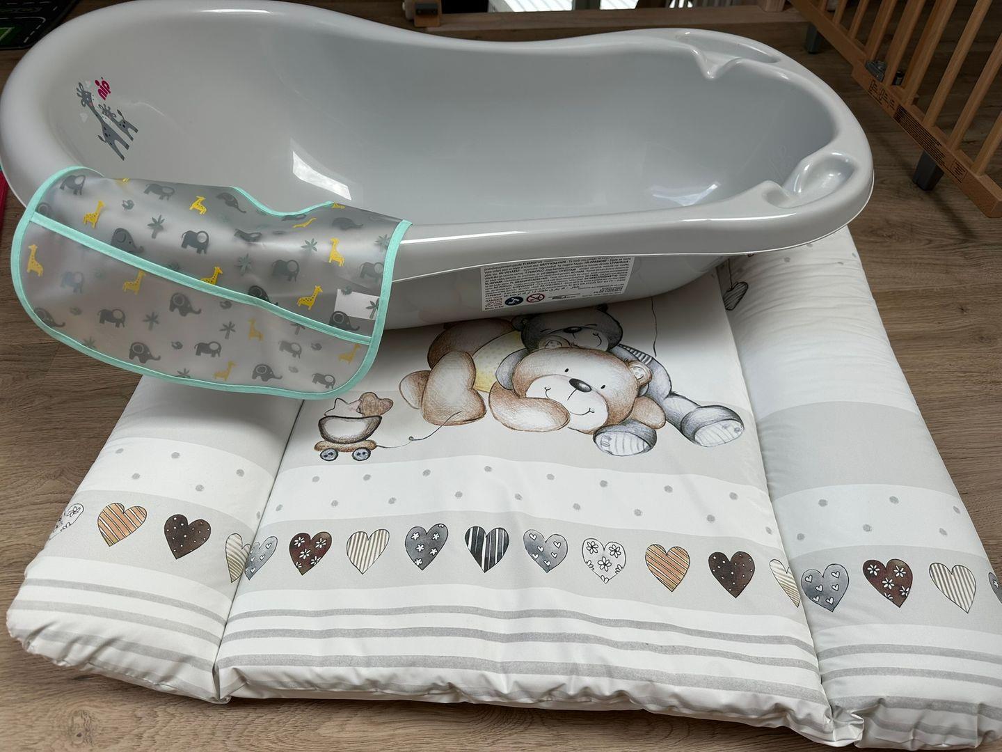 Kinderausstattung: Kinderreisebett, Kinderhochstuhl, Wickelauflage, Babybadewanne, Kindergeschirr und Besteck