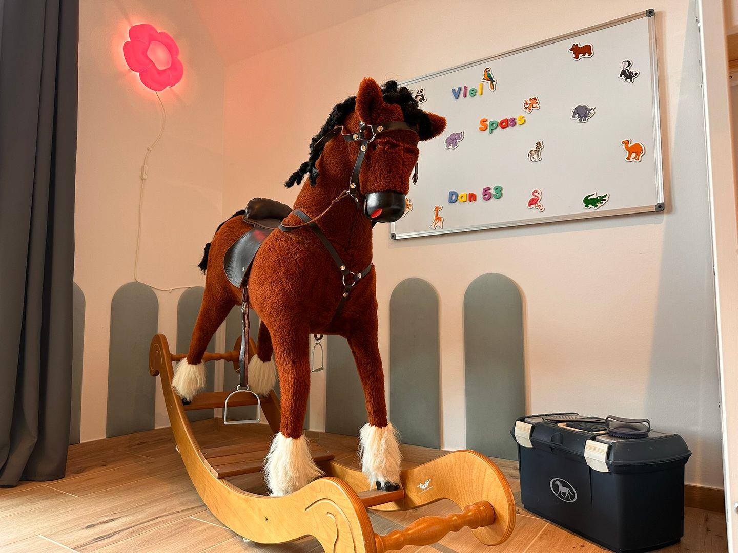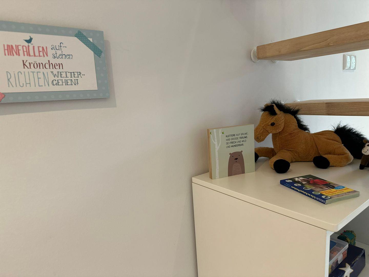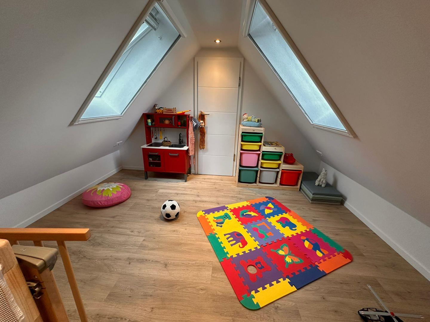 Für die kleineren Gäste gibt es einen ausgebauten Dachboden, der als Spielbereich dient und genügend Raum zum Toben und Spielen bietet. Viel Spielzeuge für allen Altersklassen sind vorhanden – das spart euch Platz im Auto für die Anreise.