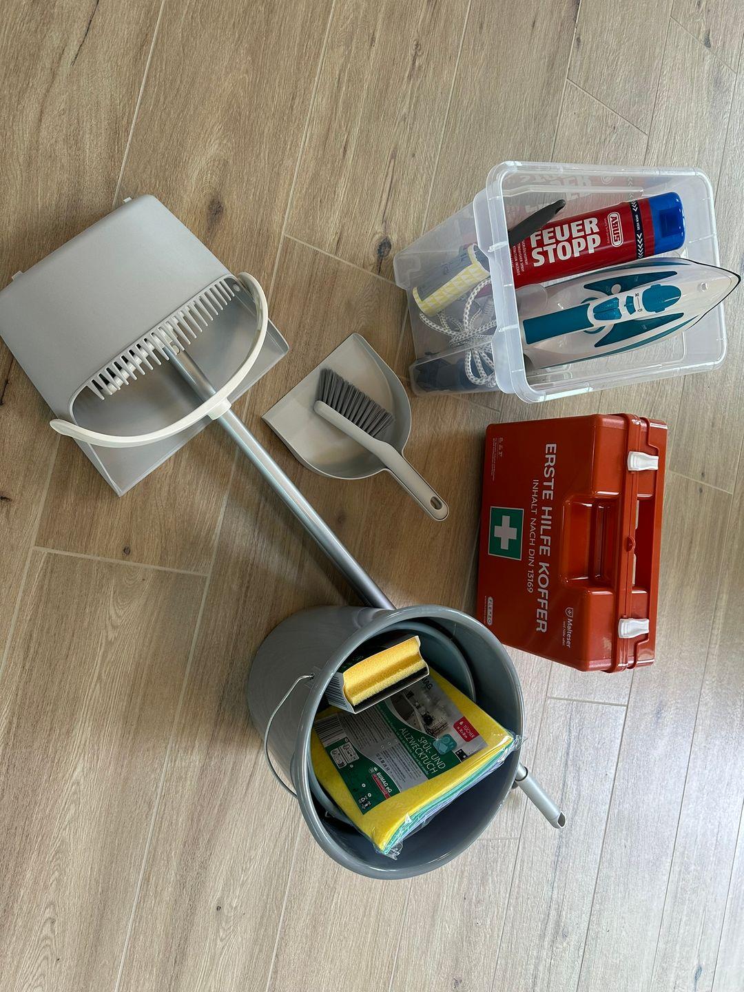 • Rauchmelder, Feuerlöscher und Erste-Hilfe-Set