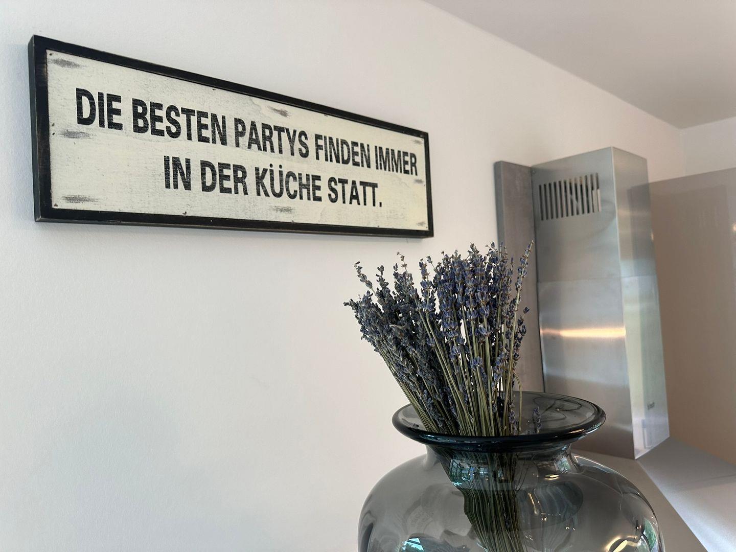 Küche und Haushalt: Einbauküche, Kühlschrank mit kombinierten Gefrierfächern (2 Stück), 4-Zonen Cerankochfeld, Dunstabzugshaube, Mikrowelle, Backofen, Geschirrspüler, Toaster, Eierkocher, Stabmixer, 3-Mix, Wasserkocher, Kaffeefiltermaschine (Filtergröße 4), Kaffeemaschine Tassimo, hochwertiges Geschirr und Besteck
