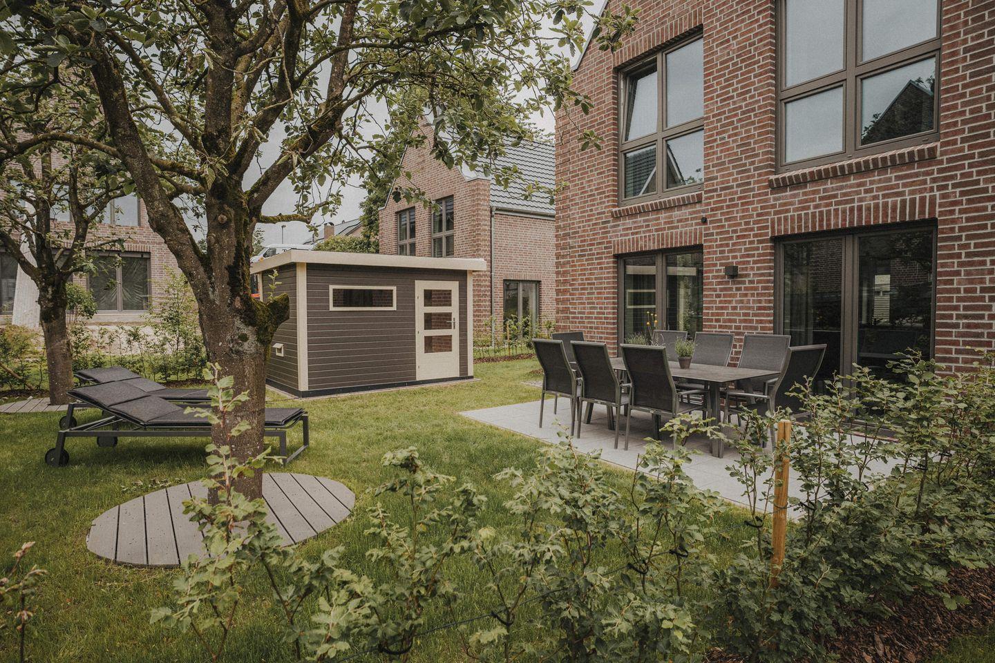 Der abschließbare Fahrradschuppen, eigener Pkw-Stellplatz vorm Haus und die private Wallbox komplettieren die hochwertige Ausstattung.