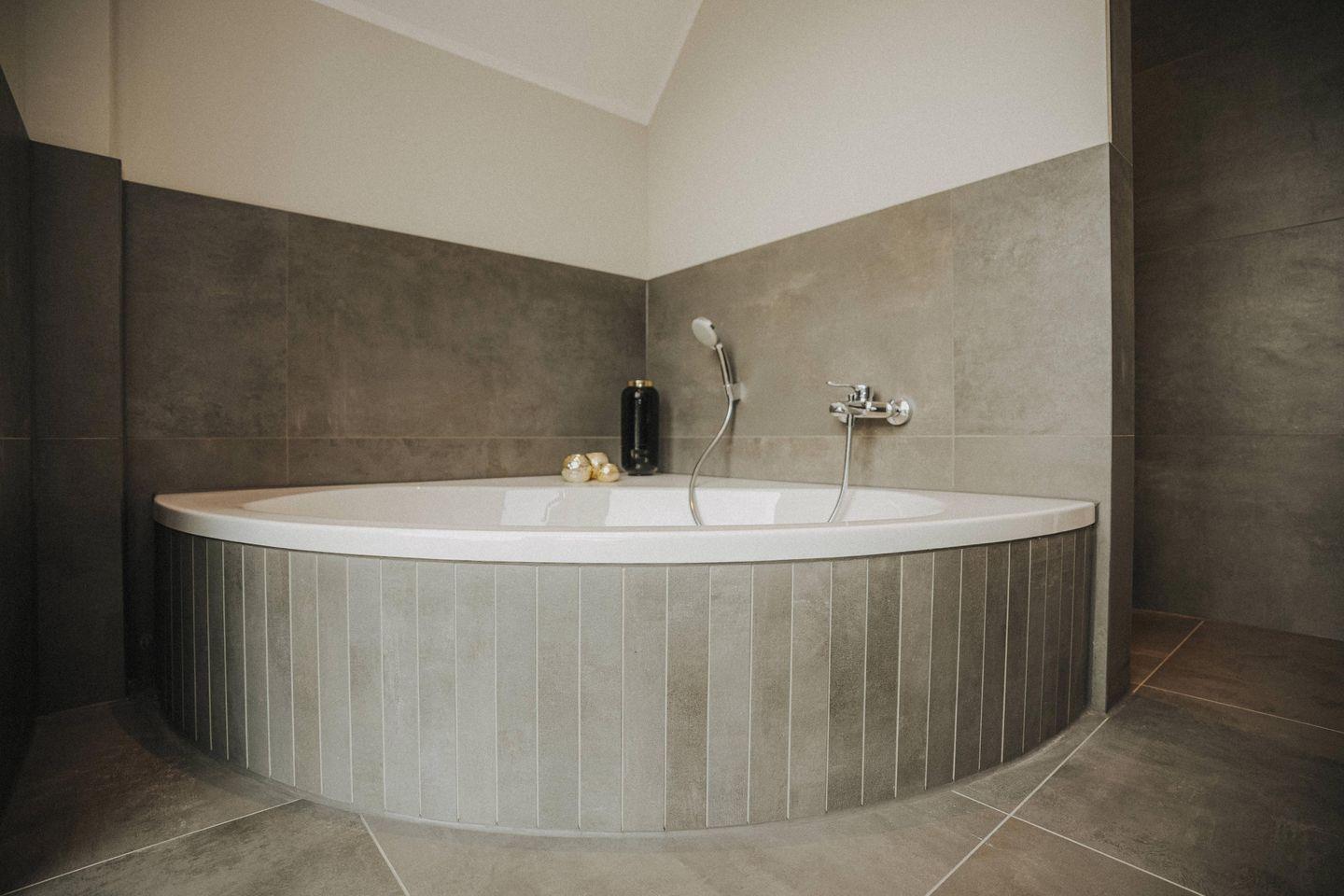 Das Bad im Eingangsbereich verfügt auch über eine großzügige Dusche und im Hauswirtschaftsraum befinden sich Waschmaschine und Trockner, damit Sie sich im Urlaub um nichts sorgen müssen.