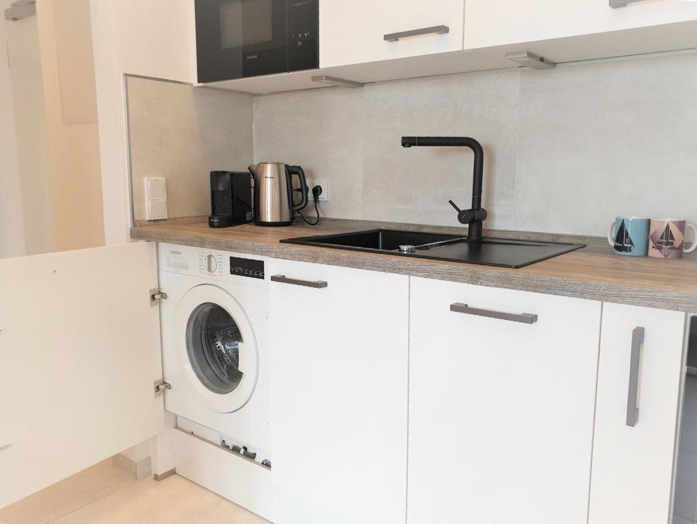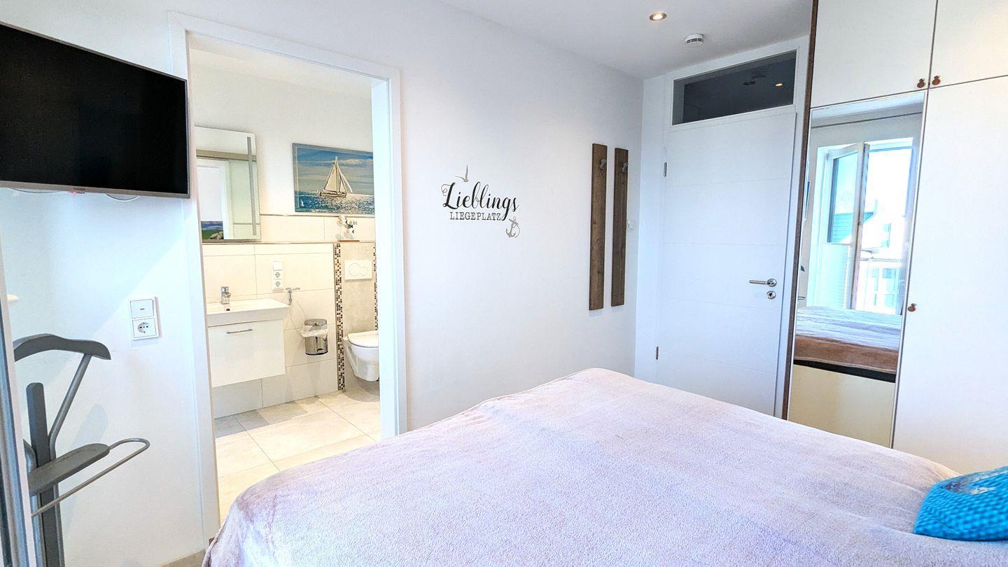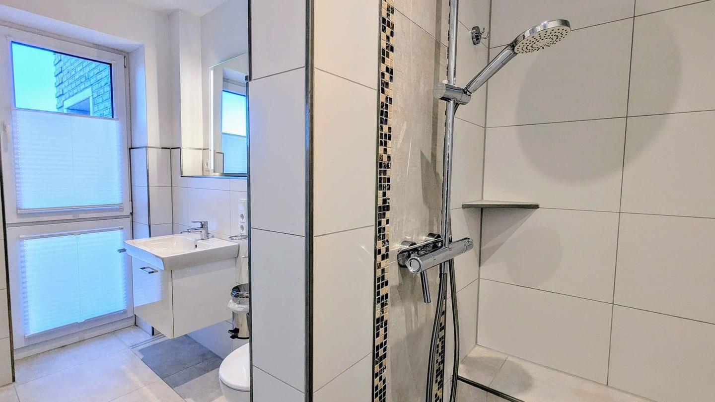 Weiterhin verfügt das Apartment über ein modernes Badezimmer mit bodengleich begehbarer Dusche, Waschbecken und WC. Für zusätzlichen Komfort sorgen ein Haartrockner sowie ein Waschmaschine in der Unterkunft, damit Sie auch während Ihres Urlaubs stets frisch gekleidet sind.