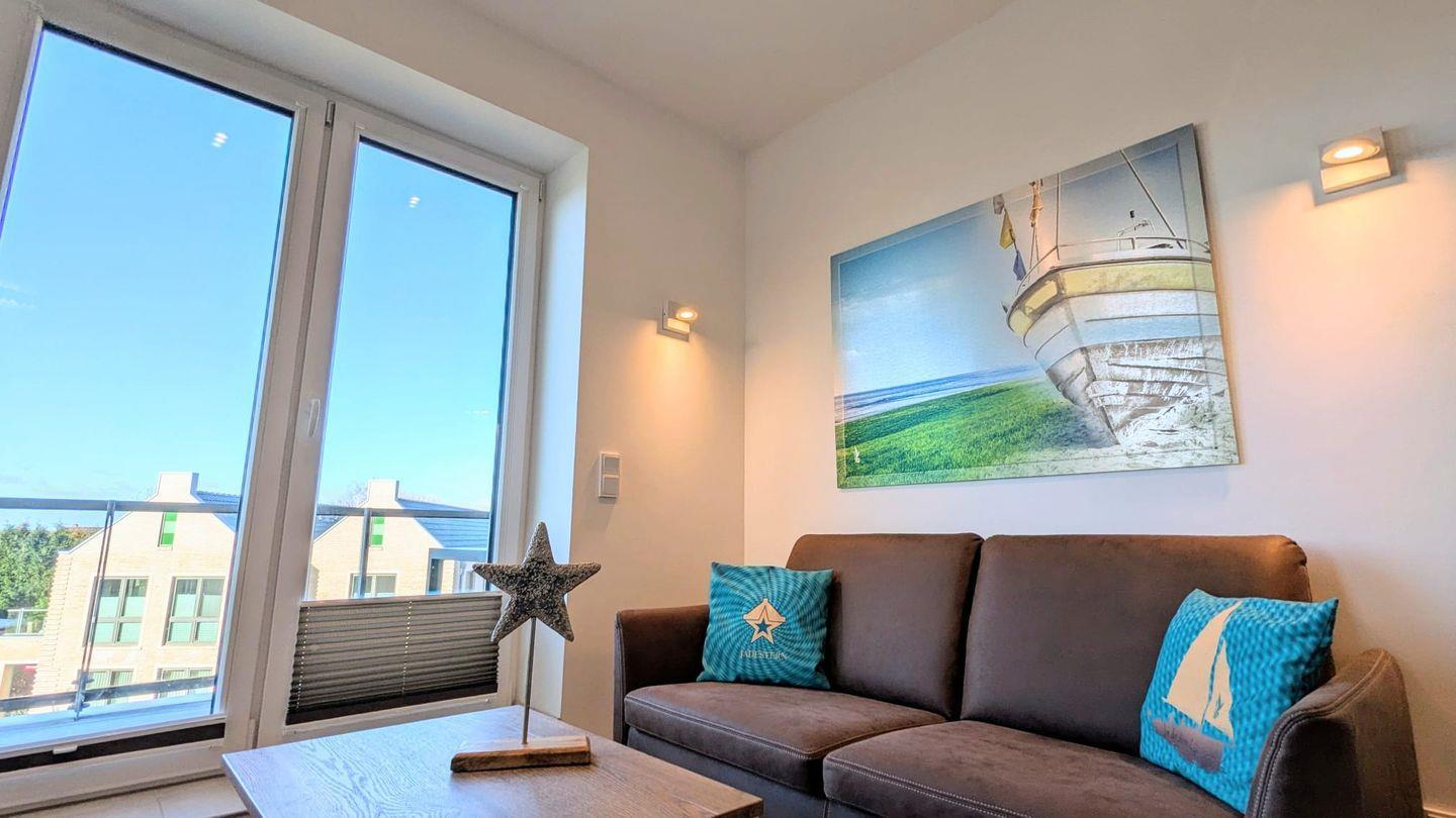 Genießen Sie den Meerblick von Ihrem eigenen Balkon und entspannen Sie in der gemütlichen Sofaecke nach einem erlebnisreichen Tag und nur fußläufig vom Strand entfernt.