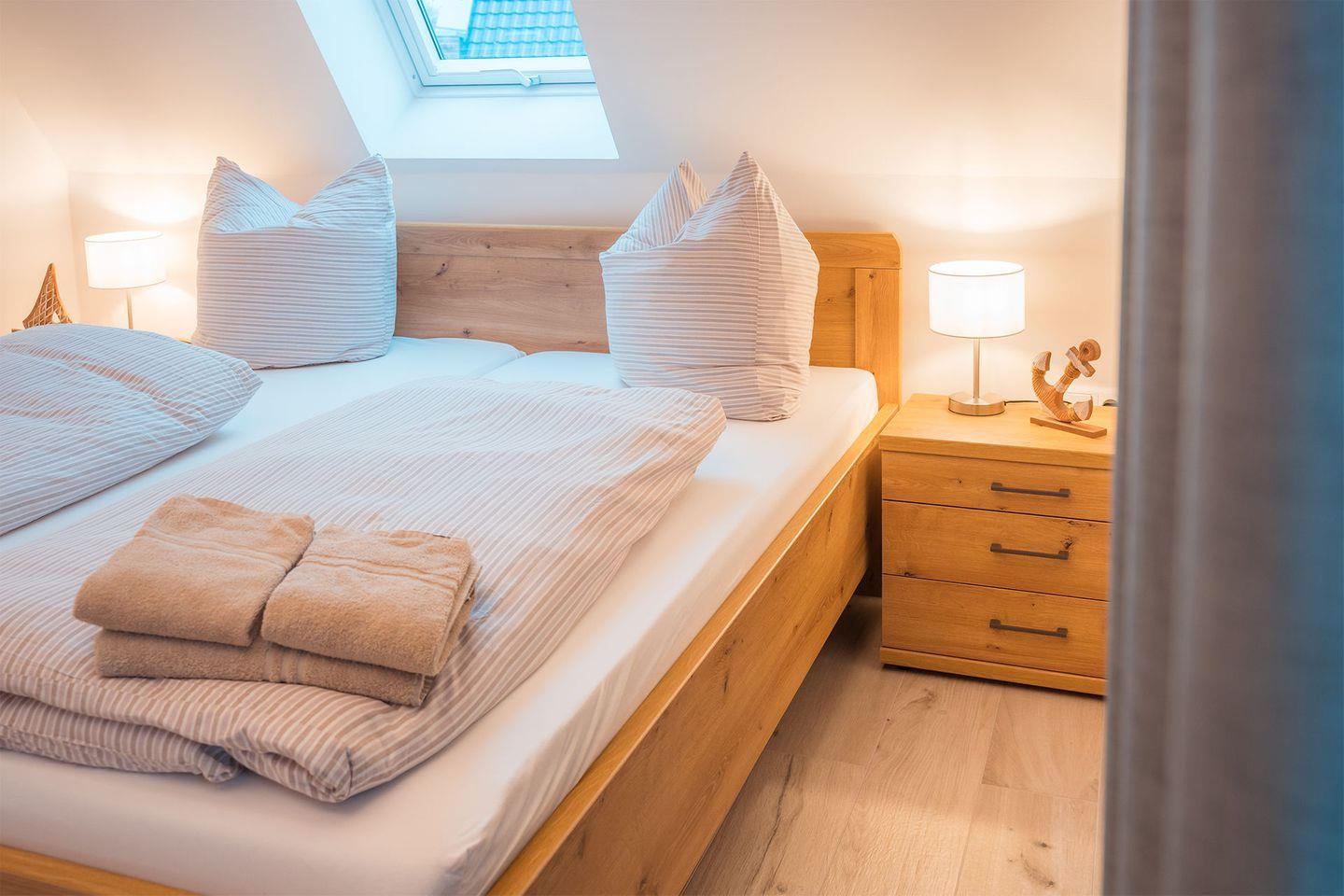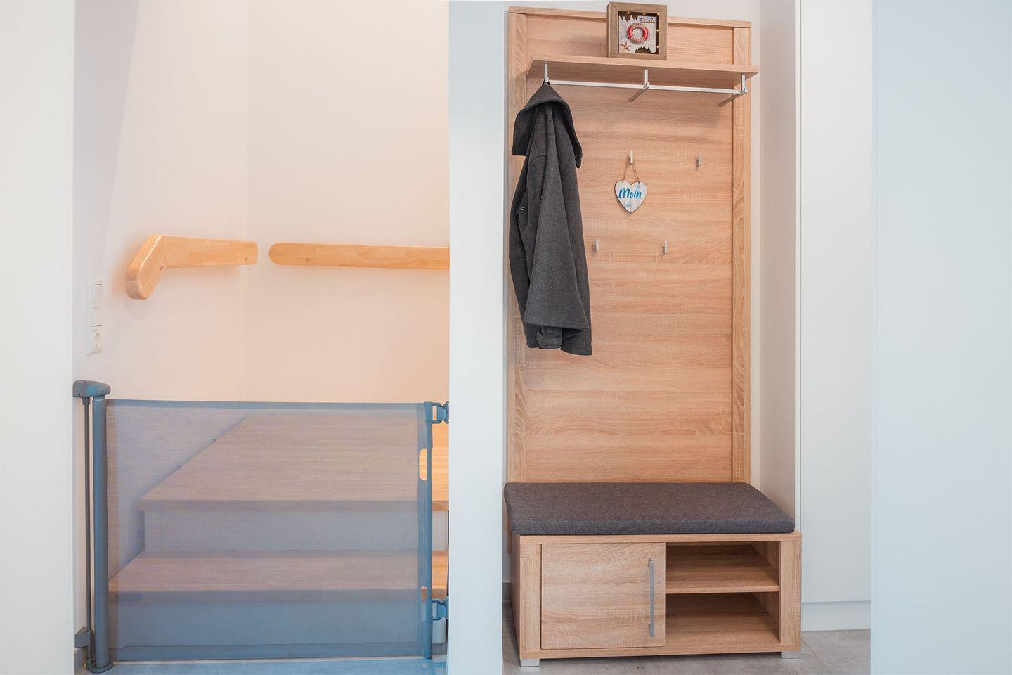 Zu den Annehmlichkeiten gehören auch zwei elegante Badezimmer mit bodengleichen Duschen. Für Familien mit Kleinkindern bieten wir ein Babybett und einen Hochstuhl an, damit Sie unbeschwerte Tage genießen können. Sicherheitsvorkehrungen wie Treppengitter und Rauchmelder sind ebenfalls vorhanden.