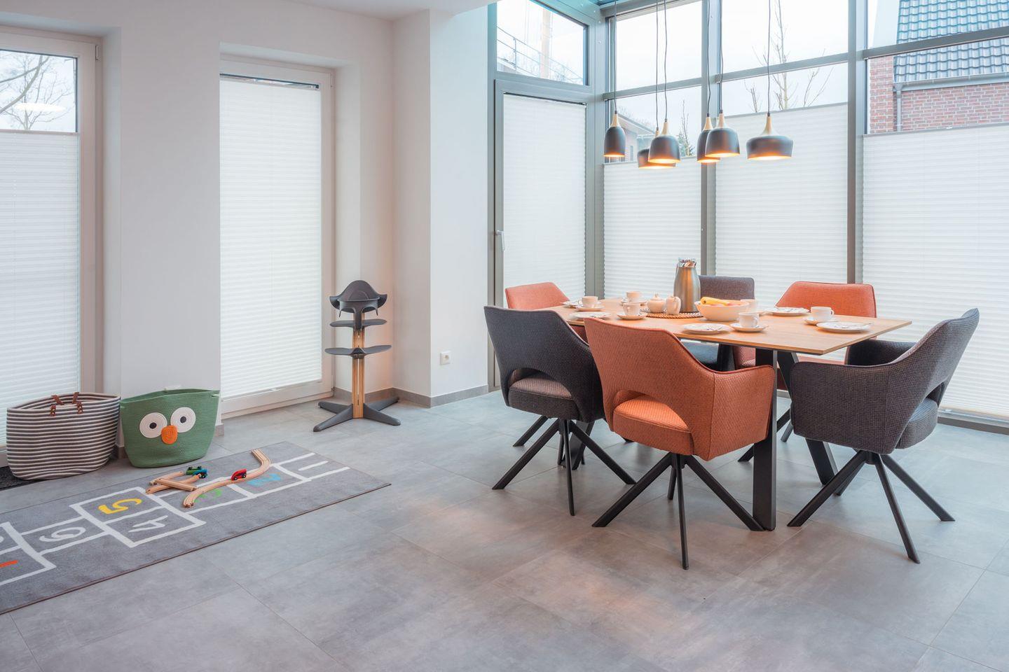 An warmen Tagen lädt die großzügige Terrasse mit Gartenmöbeln und Blick ins Grüne zum Entspannen im Freien ein. Zudem können Sie in den Garten des Hauses treten und die frische Nordseeluft genießen. Die Dangaster Düne ist freistehend und allergikergeeignet, was Ihren Aufenthalt besonders angenehm macht.