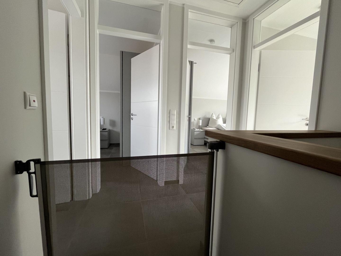 Zusätzliche Kinderausstattung: 1 Kinderreisebett und 1 Kinderhochstuhl, Wickelkommode, Treppenschutz im OG, Bollerwagen