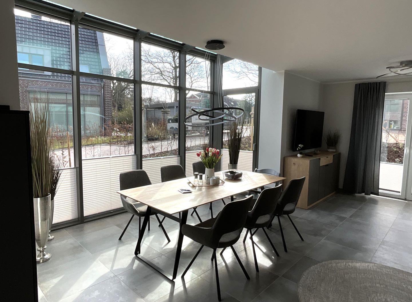 Das Haus bietet Platz für bis zu sechs Personen und ist mit drei komfortablen Schlafzimmern ausgestattet, die Ihnen einen erholsamen Schlaf garantiert. Der offene Wohnbereich besticht durch eine moderne Einrichtung und eine wohlige Atmosphäre, in der Sie sich sofort zuhause fühlen werden. Die zeitgemäße Küche ist vollständig ausgestattet und bietet alles, was Sie für die Zubereitung köstlicher Familienmahlzeiten benötigen. Genießen Sie Ihre Gerichte im Essbereich oder verlagern Sie Ihr Essen auf die großzügige Terrasse, wo Sie die frische Nordseeluft und den Blick in den Garten genießen können.
