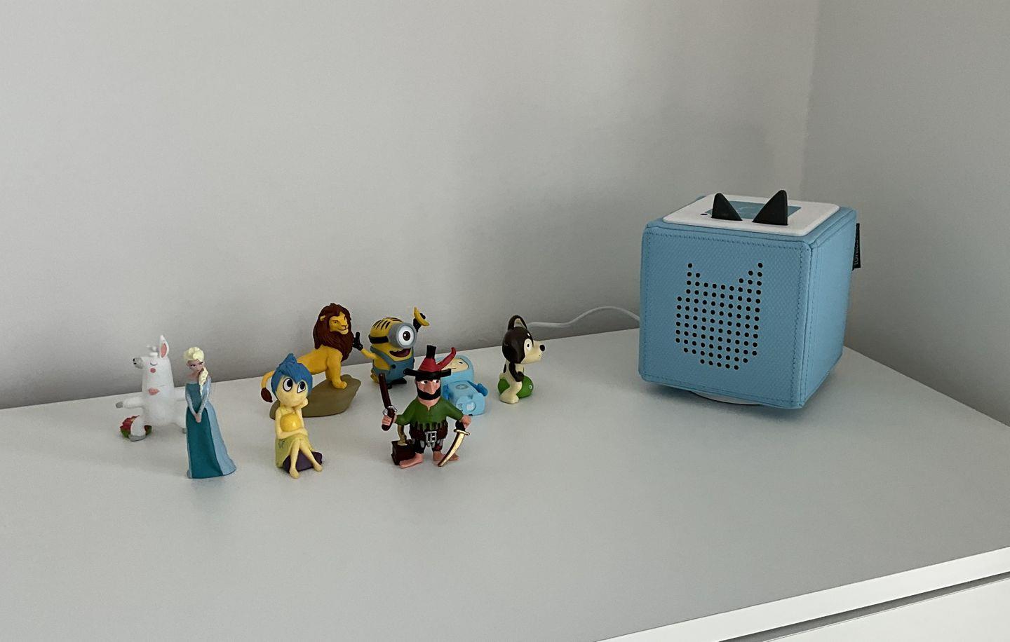 Schlafzimmer 3: extrabreites Etagenbett mit extrabreitem unteren Bett ( 2 Einzelmatratzen: 90x200 cm oben + 140x200cm unten), Kommode, Toniebox mit 8 Tonies, Verdunkelungsvorhänge