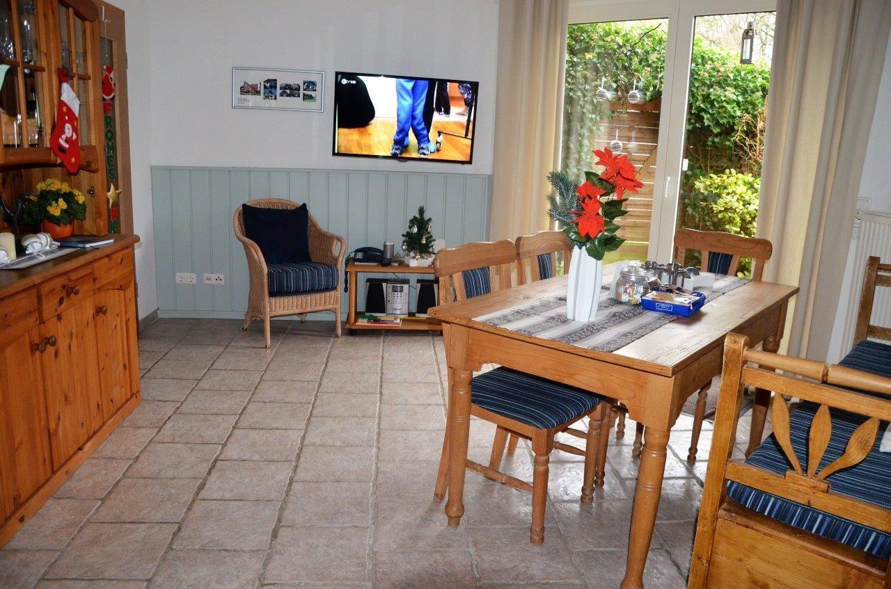 Die großzügige, geschlossene Küche lässt keine Wünsche offen: Sie finden hier moderne Geräte wie einen Herd (Ceran), einen Backofen, eine Spülmaschine, eine Mikrowelle sowie zahlreiche Küchenutensilien, um sich selbst verpflegen zu können. Ein gemütlicher Essbereich mit Zugang zum Garten lädt zum gemeinsamen Essen und Verweilen ein.