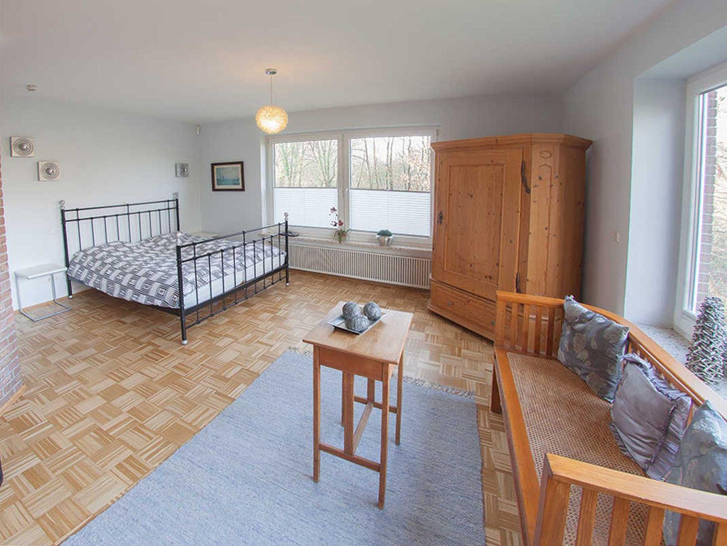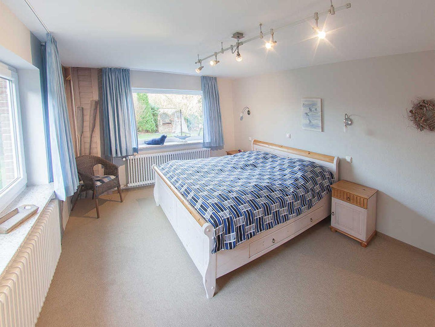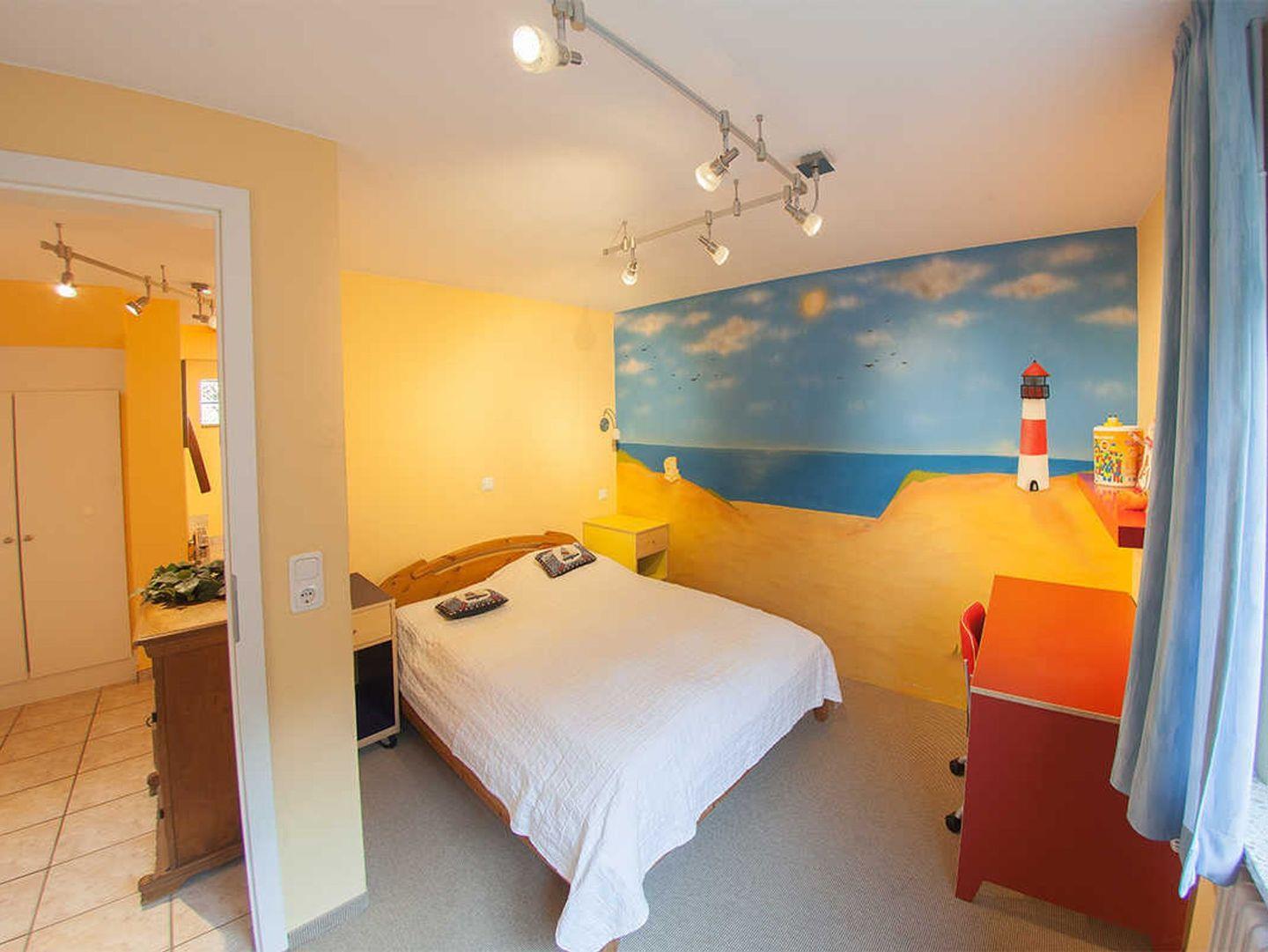 ?Freuen Sie sich auf die Sauna im Souterrain und genießen eine Auszeit im Bad en-suite mit Eckbadewanne, Waschtisch und somit der ersten Schlafmöglichkeit im Doppelbett. 2 weitere Schlafräume finden Sie hier, beide maritim gestaltet und mit weiteren 2 Doppelbetten sowie Kleiderschränken mit viel Stauraum für ihr Gepäck.??