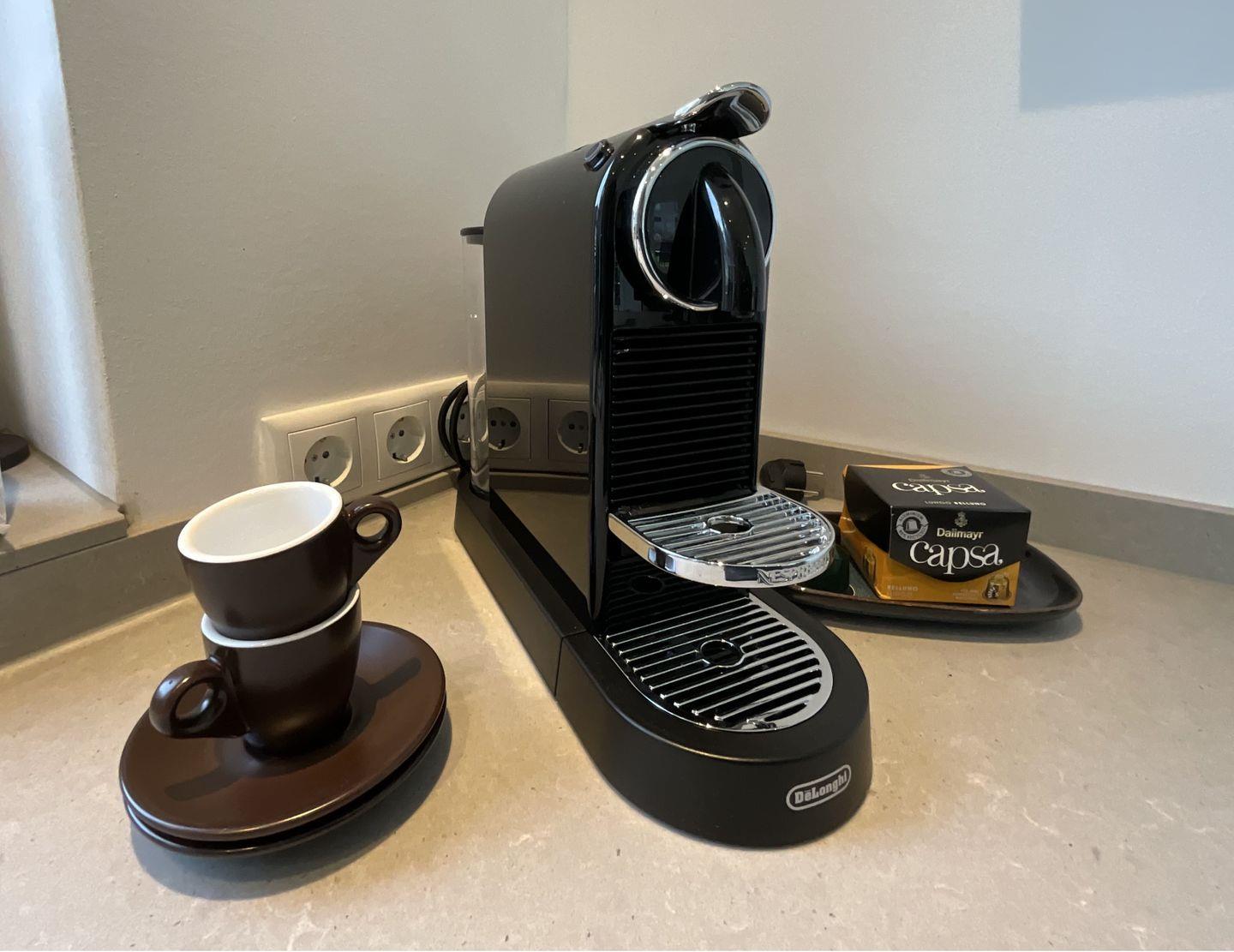 Die modern ausgestattete, offene Küche ist zum Wohnzimmer hin gestaltet und mit einem Ceranherd, Elektro-Backofen, Kühlschrank mit integriertem Gefrierfach, Spülmaschine, Wasserkocher, Toaster, Kaffeefiltermaschine und Nespresso-Espressomaschine ausgestattet. Geschirr, Besteck und alle notwendigen Küchenutensilien sind vorhanden.