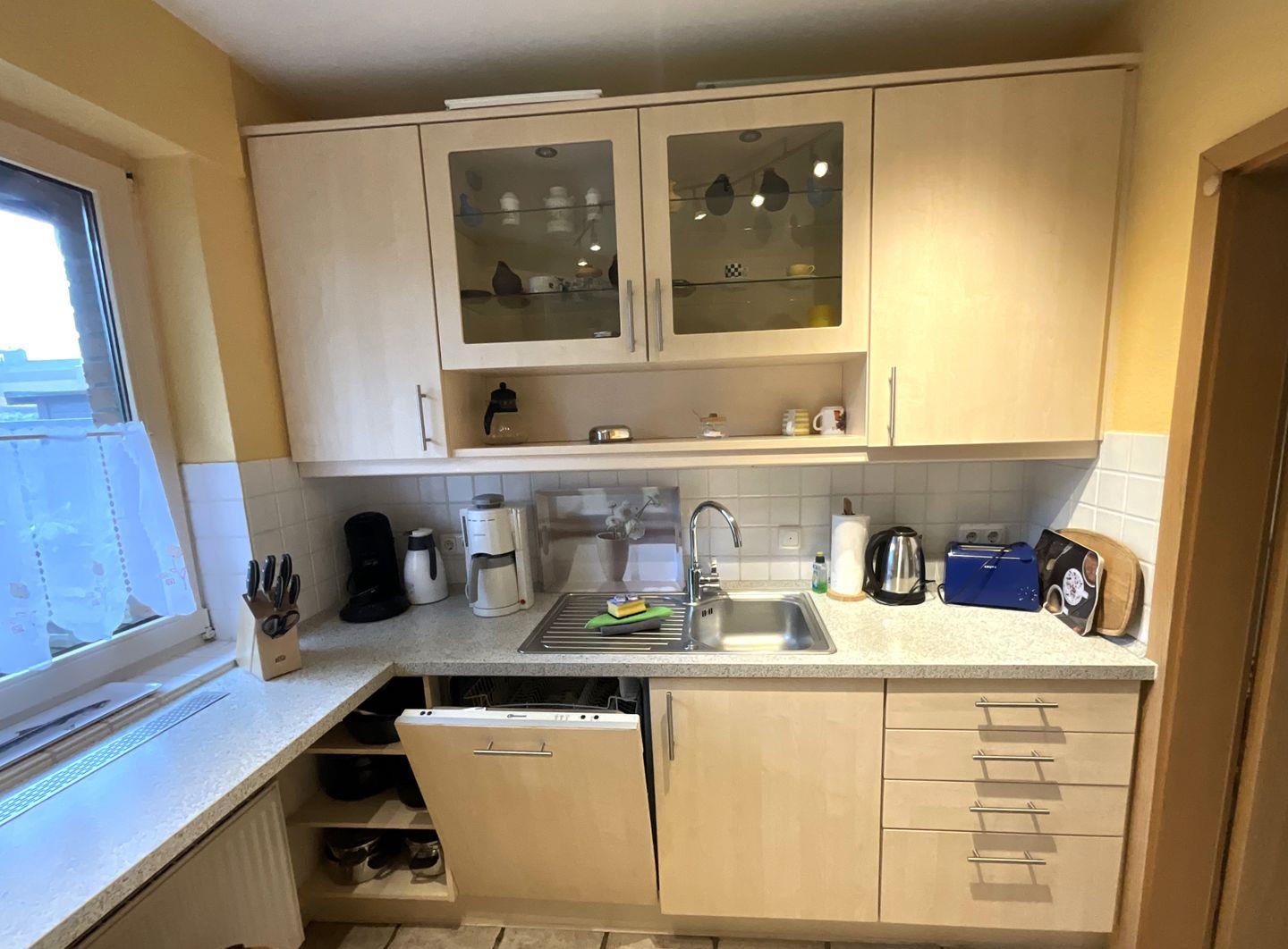 Die geschlossene Küche ist voll ausgestattet und praktisch für die Selbstversorgung: Ceran-Herd, Backofen (elektrisch), Mikrowelle, Kühlschrank mit Gefrierfach, Spülmaschine, Toaster, Wasserkocher sowie Küchenutensilien, Geschirr und Besteck sind vorhanden. Zusätzlich stehen eine Kaffeemaschine und eine Senseo-Espressomaschine zur Verfügung. Ein Essbereich mit Esstisch rundet den gemeinschaftlichen Bereich ab.