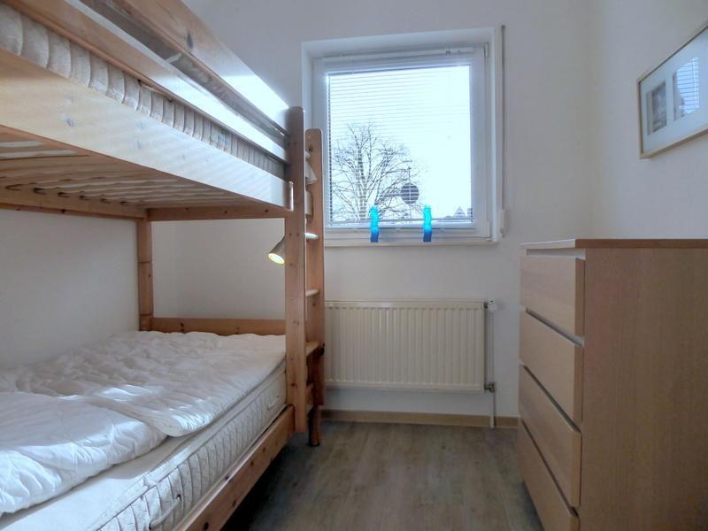 Ein großes Wohnzimmer mit Loggia-Balkon lädt Sie zu entspannte Stunden ein. Das Elternschlafzimmer mit Doppelbett sowie ein weiteres Schlafzimmer mit Etagenbett bietet ausreichend Platz zum Schlummern.