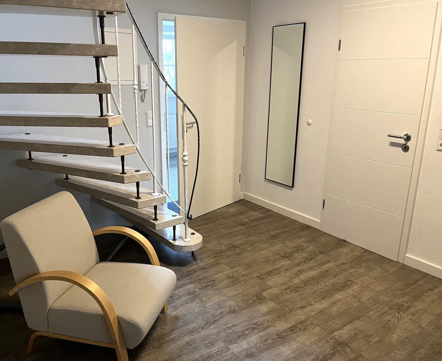 Zwei vollausgestattete Duschbäder mit WC stehen Ihnen zur Verfügung, eines im ersten Geschoss und das zweite im ausgebauten Dachgeschoss.