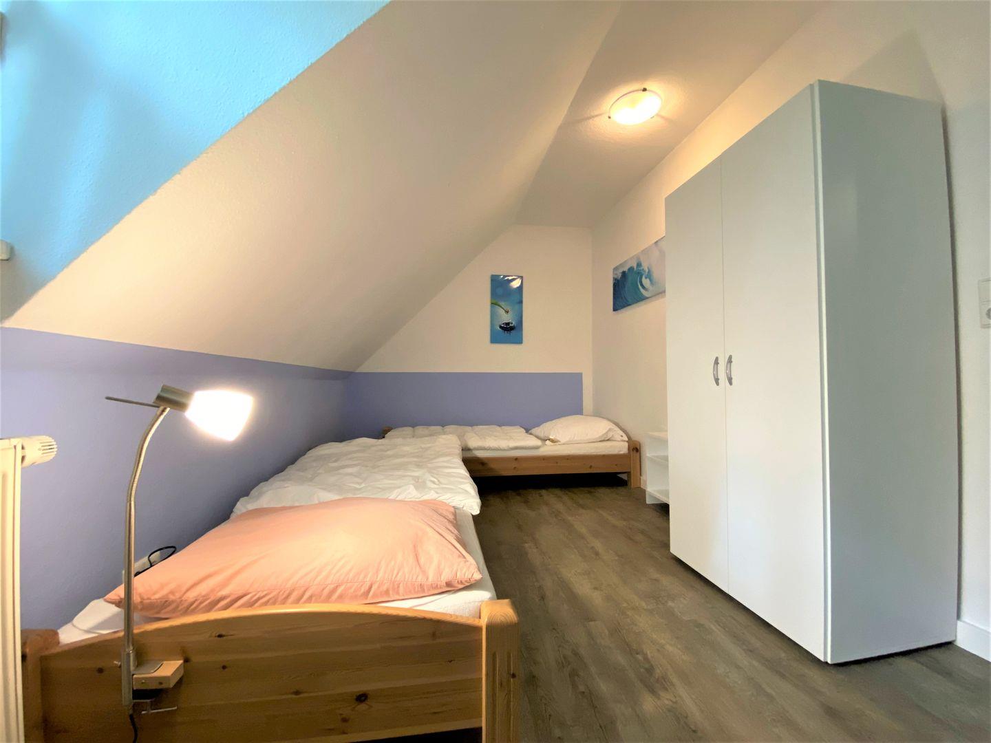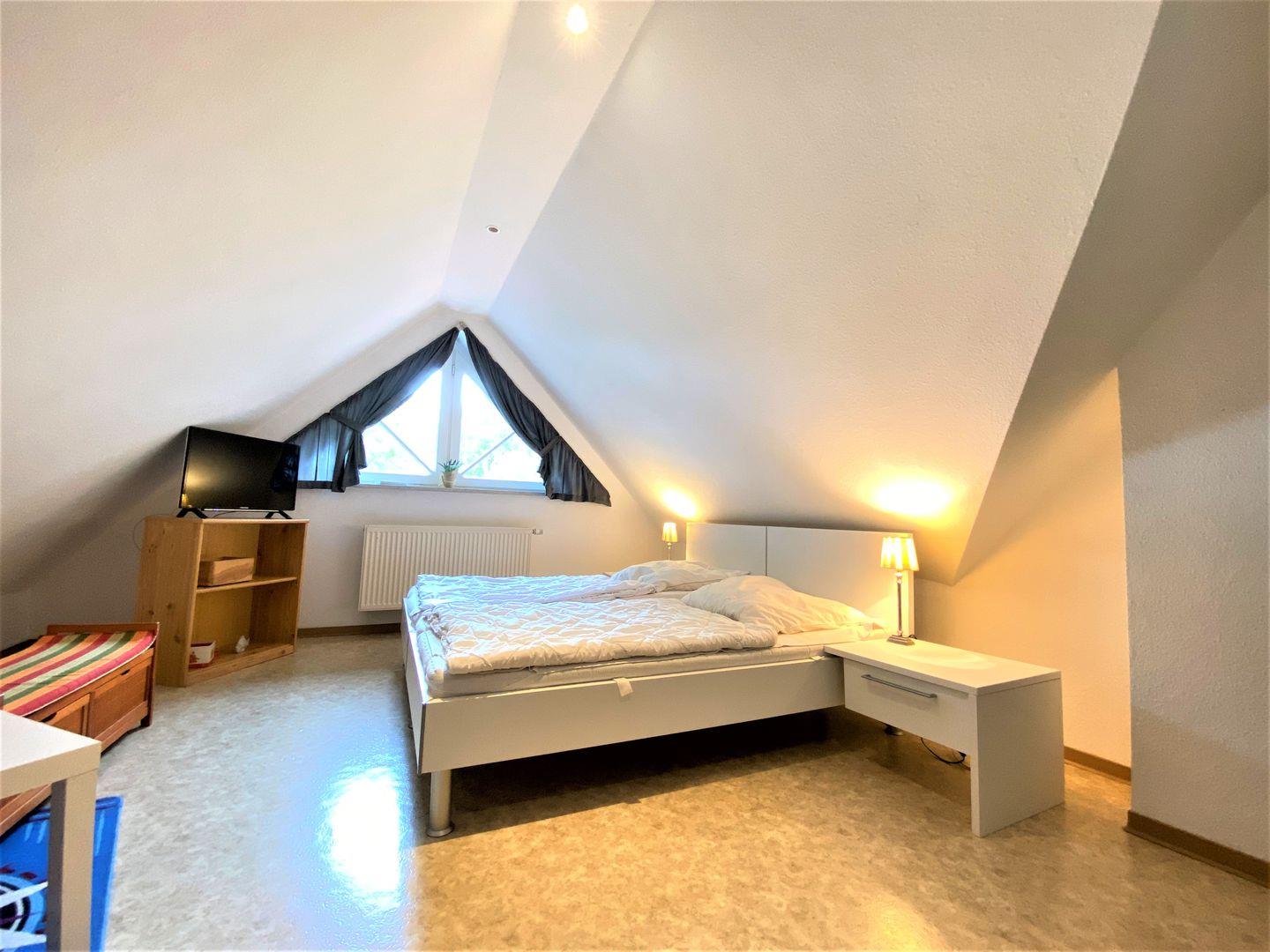 Sie verfügen außerdem über drei Schlafzimmer: Das Elternschlafzimmer mit Doppelbett, ein weiteres mit zwei Einzelbetten und das dritte Schlafzimmer mit zwei Einzelbetten im ausgebauten Dachstudio.