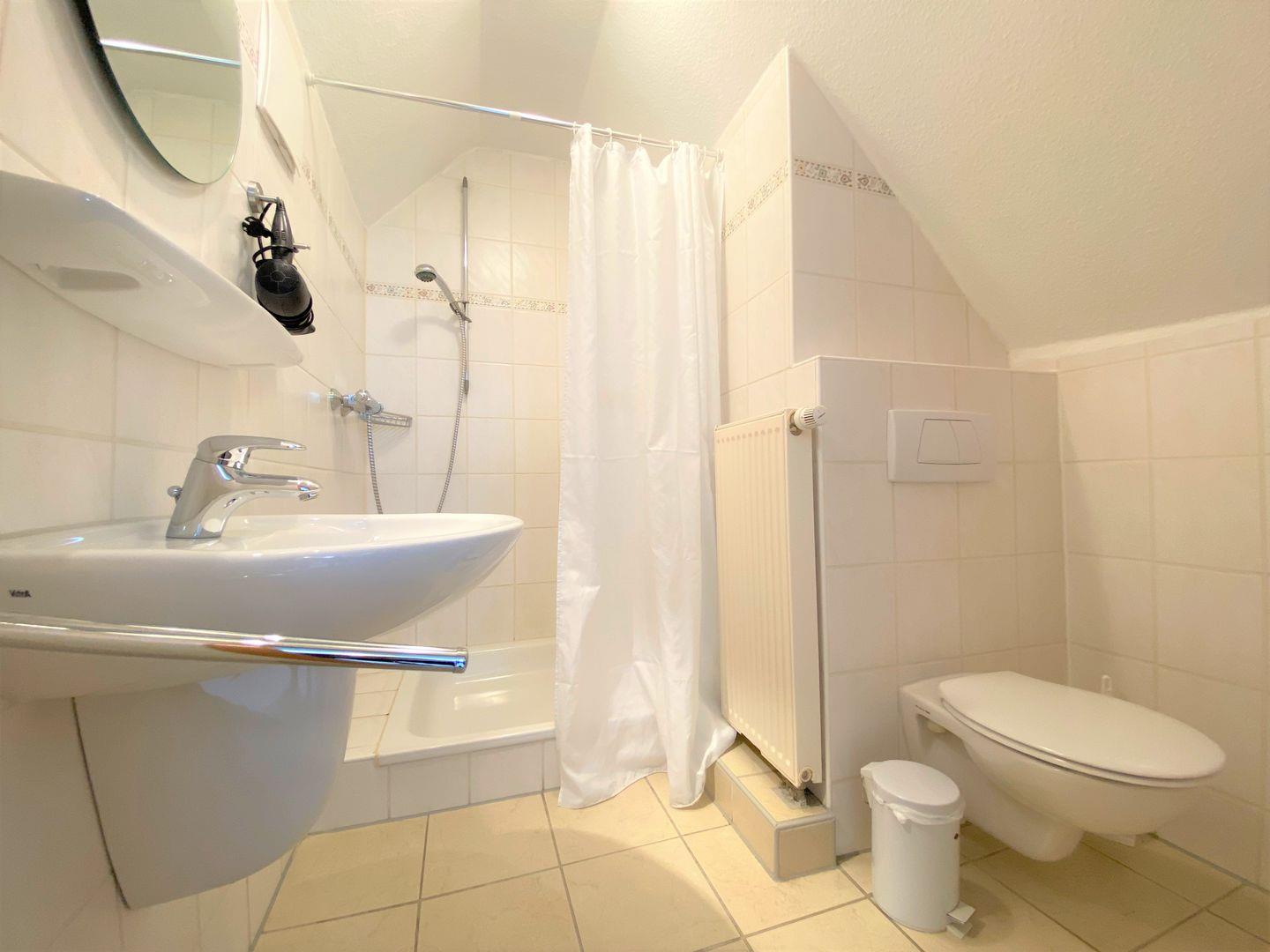Die Wohnung verfügt außerdem über zwei vollausgestattete Duschbäder, eines im ersten Geschoss und das zweite ebenfalls im ausgebauten Dachstudio.