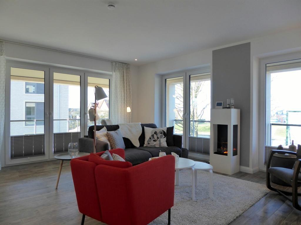 Allgemein: ca. 104m², max. 4 Personen, Luxuriös ausgestattete 3-Zimmer-Wohnung mit großzügiger Terrasse, Infrarot-Sauna, Gas- Kamin, 2 Schlafzimmern, 2 Bädern und direktem Meerblick, PKW-Stellplatz - befindet sich in unmittelbarer Hausnähe, Fahrradabstellraum, Nichtraucherwohnung, keine Haustiere, barrierefrei, allergikergeeignet