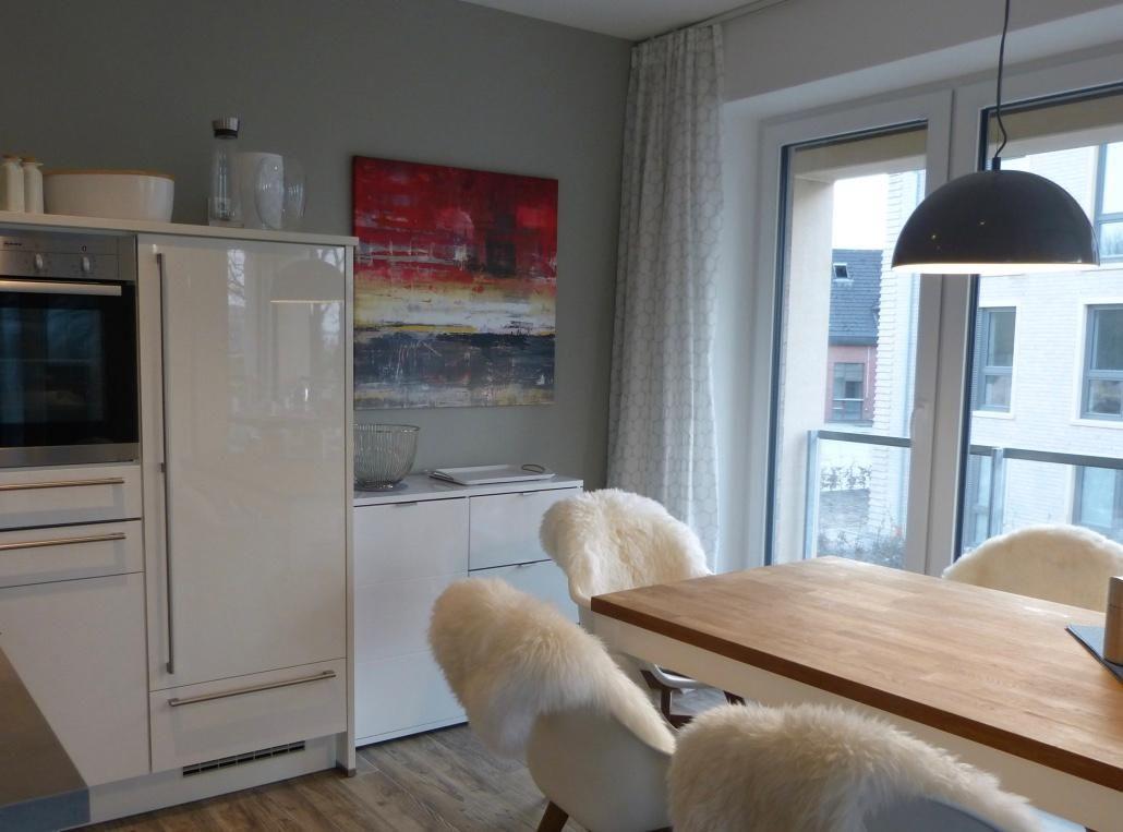 Die offene und moderne Küche ist mit den besten und neuesten Markengeräten ausgestattet. Der lichtdurchflutete Essbereich bietet eine hell-freundliche Atmosphäre.