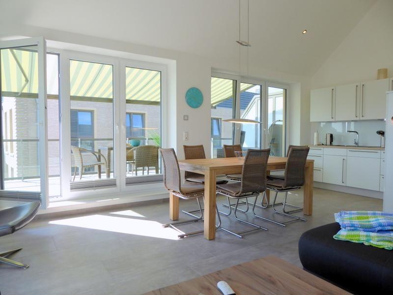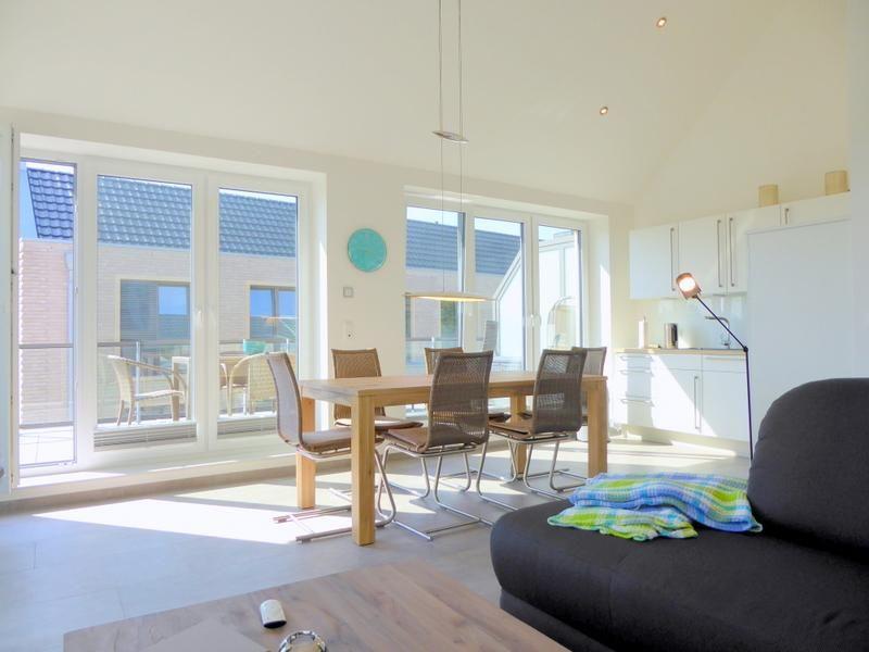 Allgemein: ca. 104m², max.4 Personen, Luxuriös ausgestattete 3-Zimmer-Penthousewohnung mit großzügiger Dachterrasse, 2 Schlafzimmern, 2 Bädern, kostenfreier Pkw-Stellplatz, Fahrradabstellraum, Nichtraucherwohnung