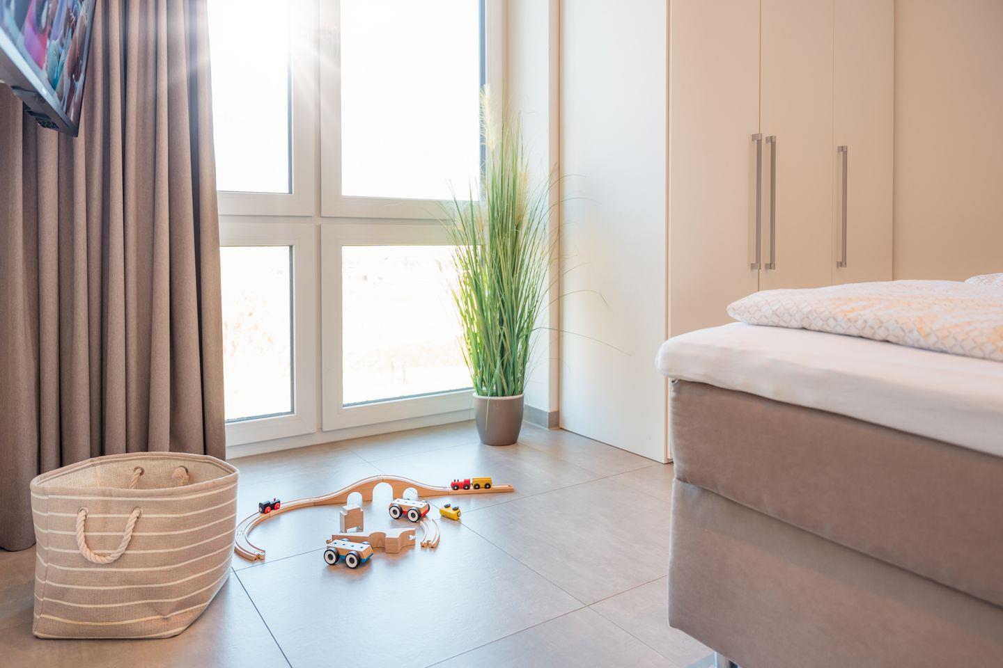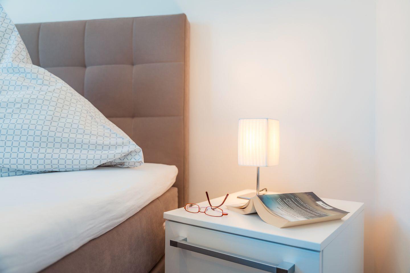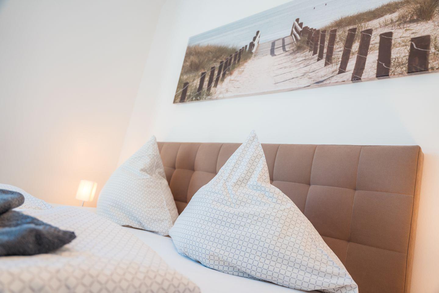 In dem Penthouse befinden sich zwei Schlafzimmer mit je einem Boxspring-Doppelbett (mit Einzelmatratzen). Extra hohe Komfortmatratzen mit zusätzlichen kuschelig-weichen Toppern sowie Fenster mit lärm- und wärmedämmender Dreifachverglasung sorgen für entspanntes Schlafen. Beide Schlafzimmer sind mit Full-HD-Flachbild-TV und Fliegengittern ausgestattet.