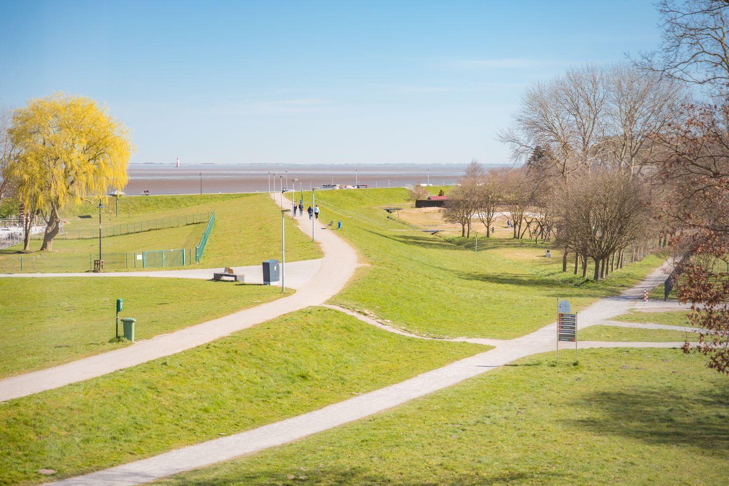 Bis zu 4 Personen können hier auf rund 90 qm das ganze Jahr entspannen und den Blick über den Deich auf den Jadebusen und den Leuchtturm Arngast genießen. Bitte beachten Sie, dass der Zugang zum Balkon nur über eine innenliegende Stufe zugänglich ist.