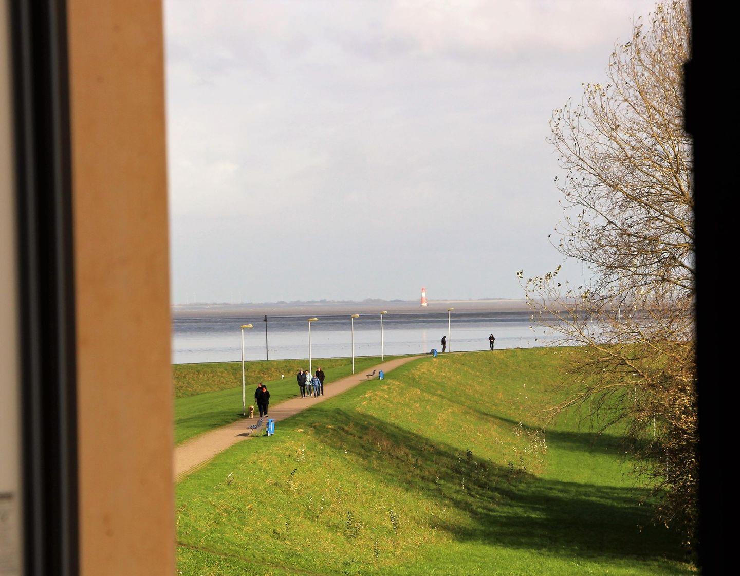 Sie gelangen über den Fahrstuhl oder über die Treppe in Ihr Domizil. Durch den Flur mit geschickt integrierter Garderobe geht es in den sehr stilvoll eingerichteten Wohn- und Essbereich mit hochwertiger Ledergarnitur und einem Holzkaminofen für kühlere Tage. Für Unterhaltung ist dank eines Flat-TV und eines CD/MP3-Players mit Bluetoothoption für Smartphones gesorgt. Eins ist sicher - hier erleben Sie Erholung pur! Für die warmen und sonnigen Tage können Sie auf der großzügigen Dachterrasse mit elektrischer Markise und hochwertigen Gartenmöbeln entspannen. Wie der Name schon verrät, haben Sie hier einen hervorragenden Panorama-Ausblick auf den Jadebusen - einfach magisch!