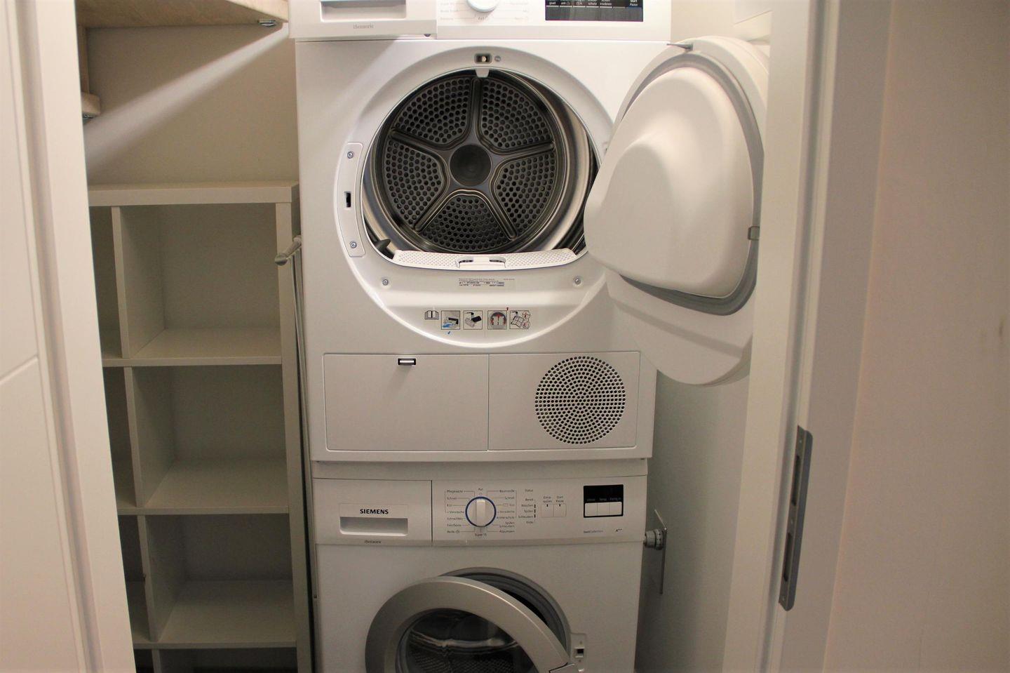 Haushalt: Staubsauger, diverse Reinigungsutensilien, Wäscheständer (im Abstellraum im Flur), Waschmaschine, Trockner