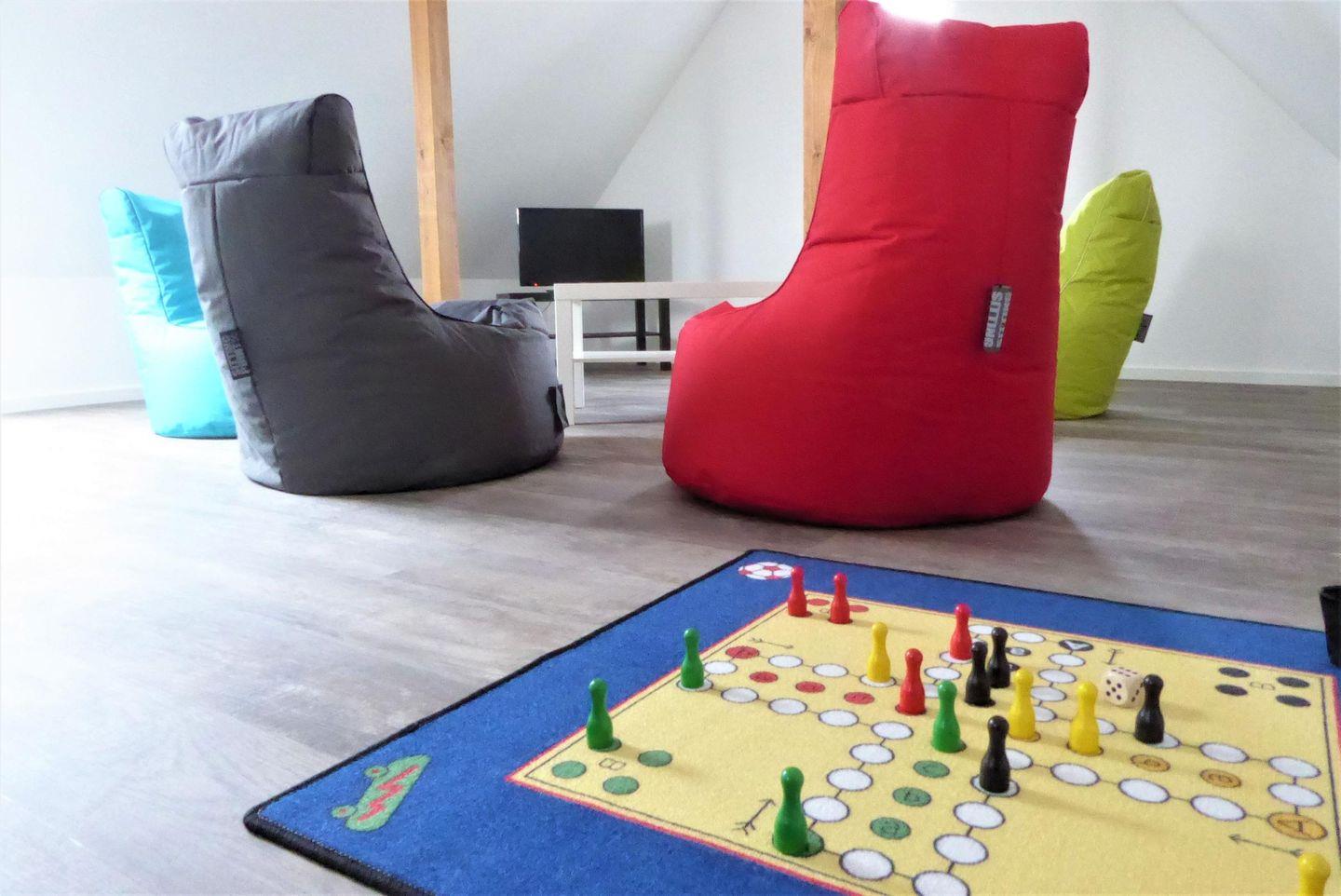 Spiel- und Aufenthaltsraum im Dachboden: Flachbildfernseher, 4 Sitzsäcke