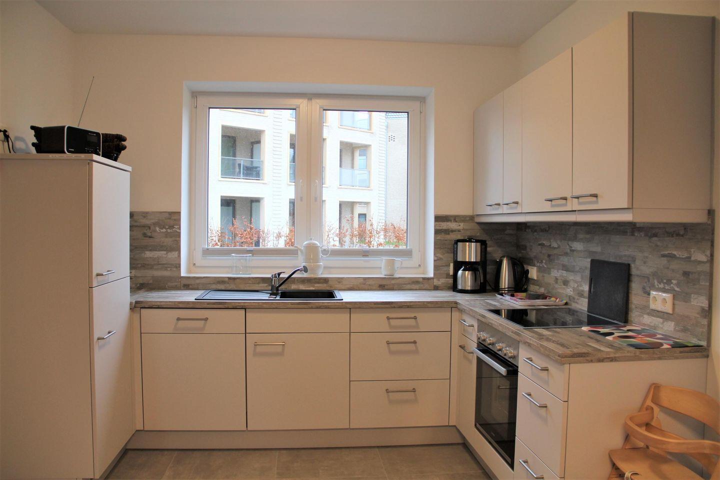 Küche und Haushalt: Einbauküche, Kühlschrank mit Gefrierfach, 4-Zonen Cerankochfeld, Backofen, Dunstabzugshaube, Mikrowelle, Geschirrspüler, Kaffeefiltermaschine, Toaster, Wasserkocher, Eierkocher, hochwertiges Geschirr und Besteck