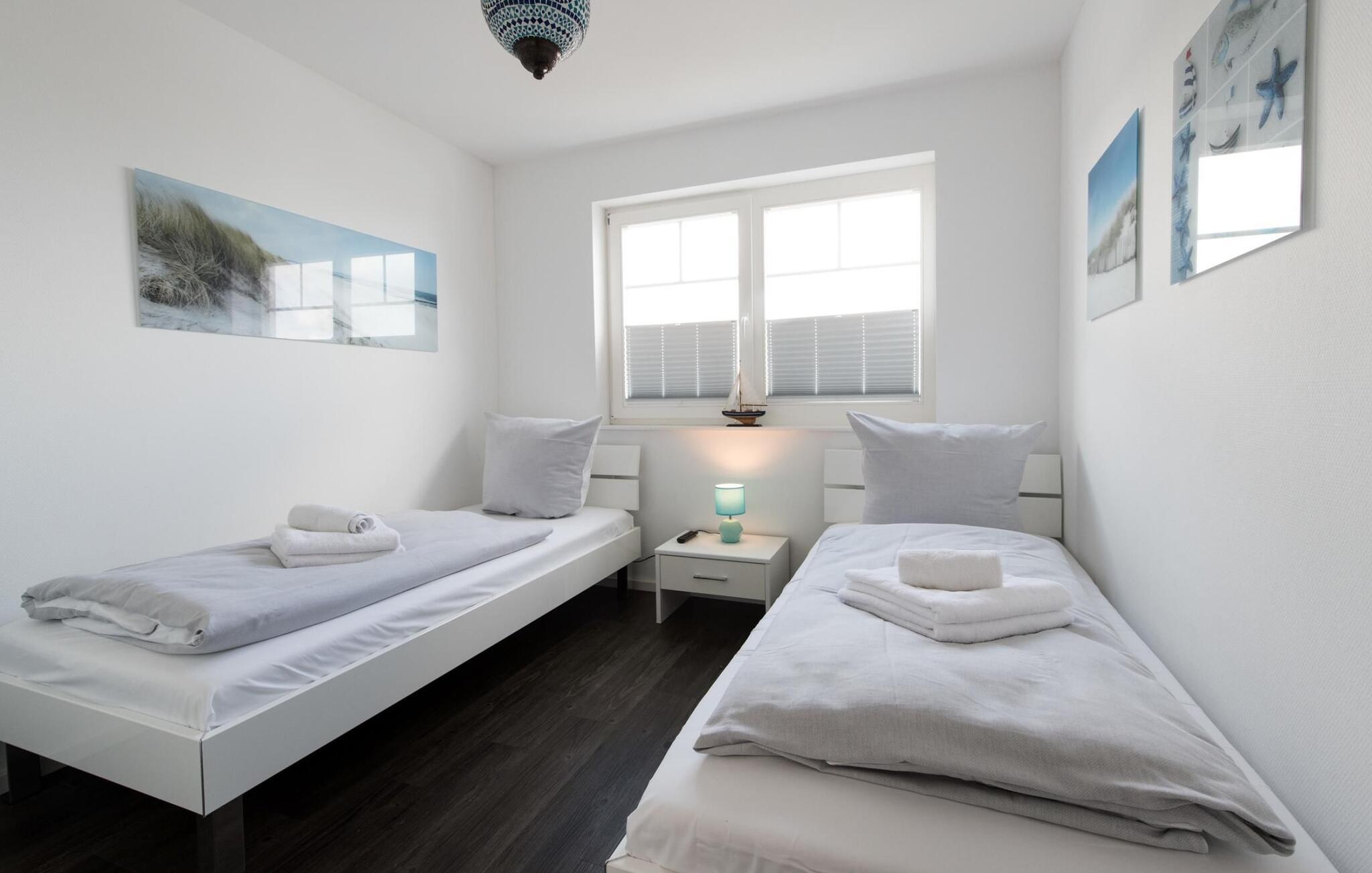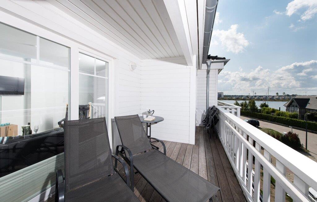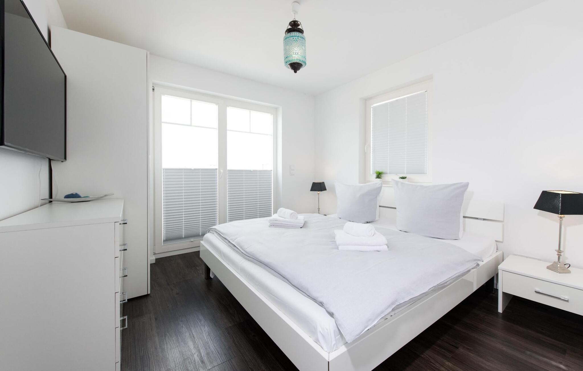Im ersten Obergeschoss verfügt das Ferienhaus über zwei gemütliche Schlafzimmer. Das Hauptschlafzimmer ist im wahrsten Sinne traumhaft, denn neben einem eigenen Sonnenbalkon darf man hier mit einem wunderschönen Blick über die Schlei und die Marina aufwachen und einschlafen.