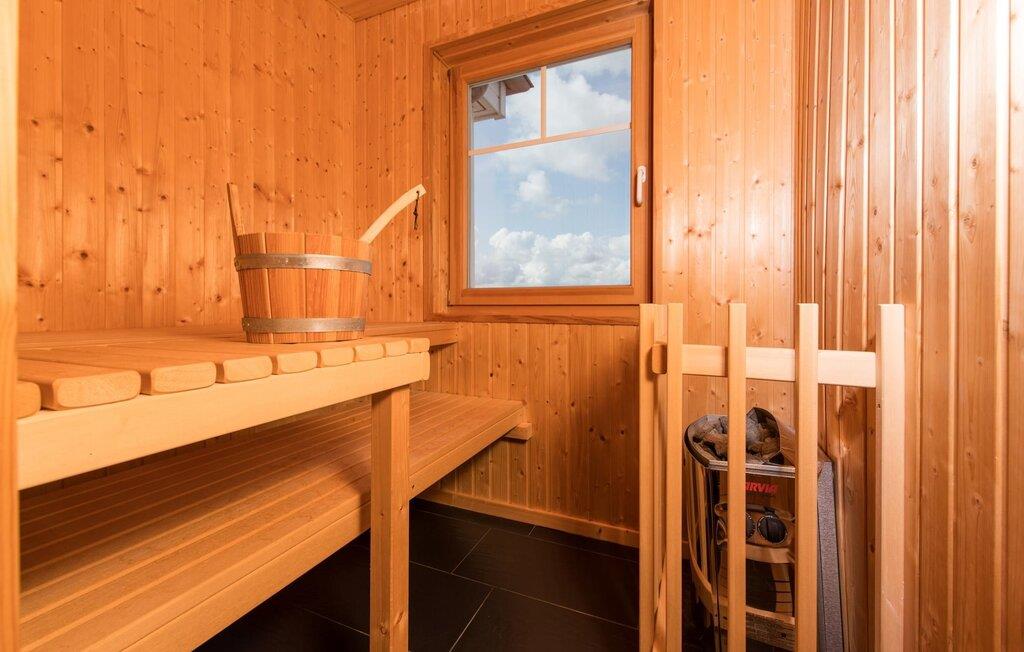 Für das wohltuende Spa-Programm steht auf dieser Ebene außerdem die hauseigene große, finnische Sauna bereit. Für die nötige Abkühlung sorgt die anliegende Dusche.