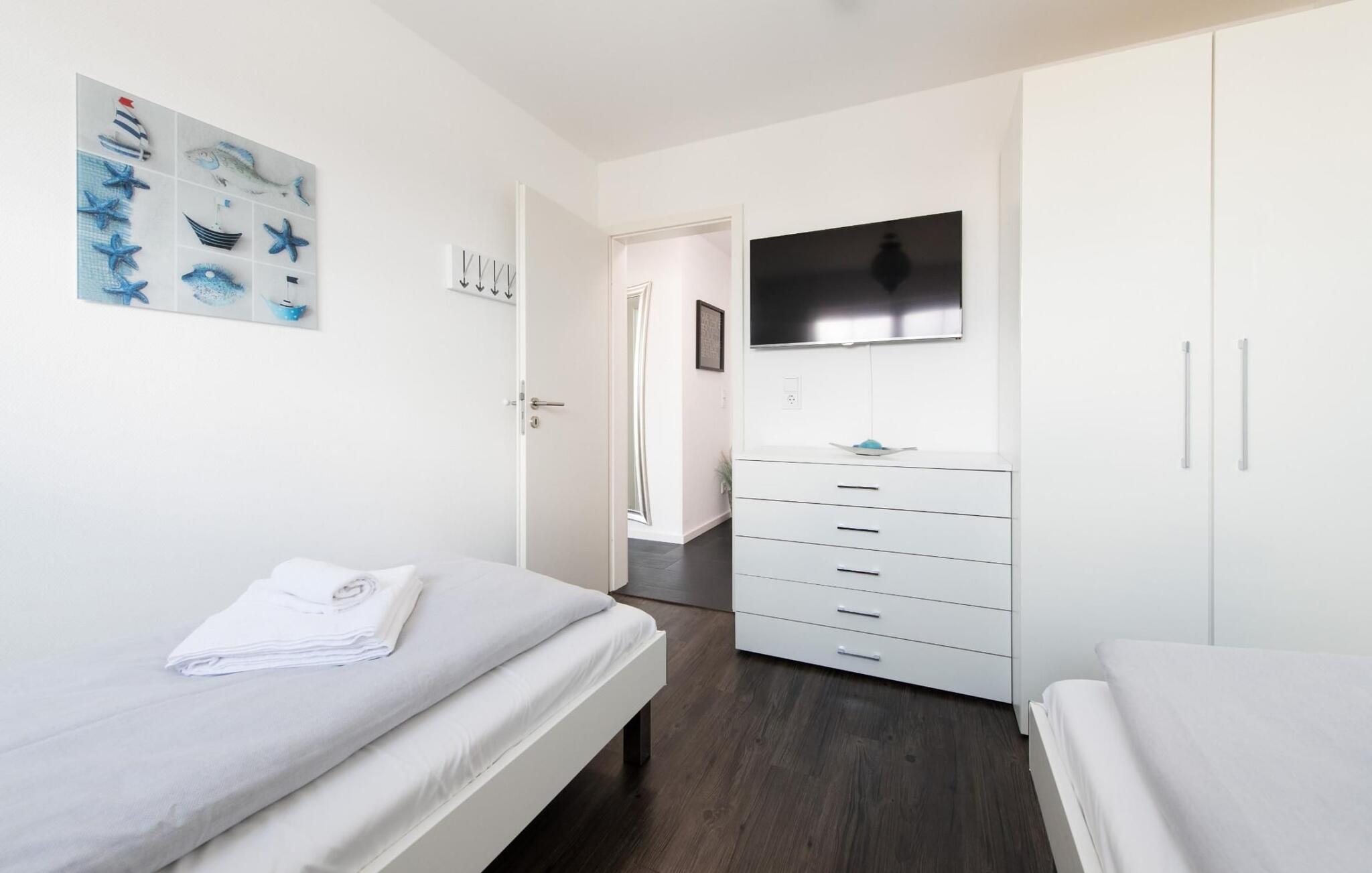Mit einem Kaffee im Morgenmantel direkt auf die Terrasse treten, die Boote, die Wellen und das Hafentreiben beobachten, was will man mehr? Beide Schlafzimmer sind mit Flatscreen-TVs ausgestattet.