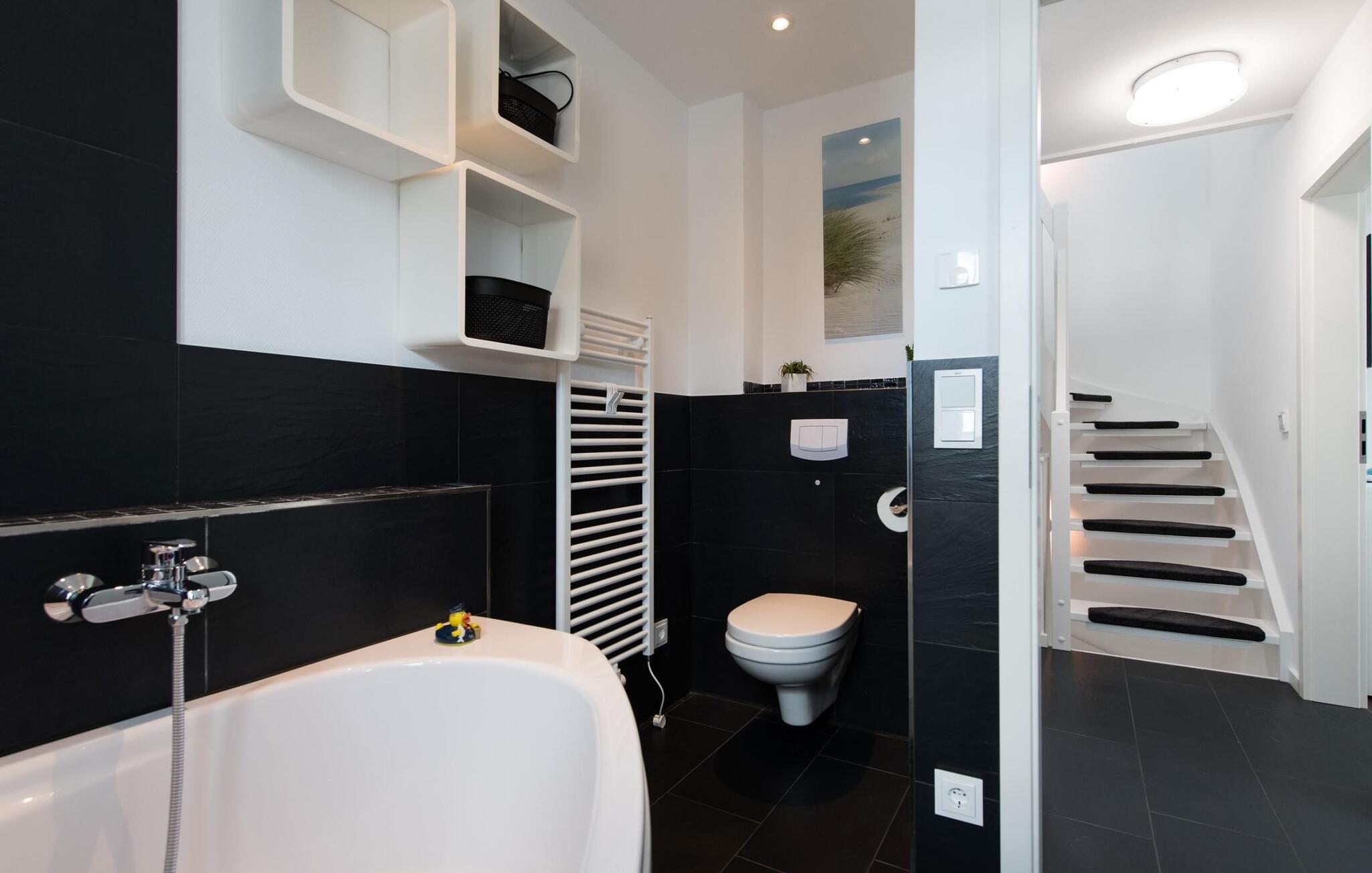 Badezimmer (nr. 1) - WC. Warmes und kaltes Wasser. Dusche und Badewanne