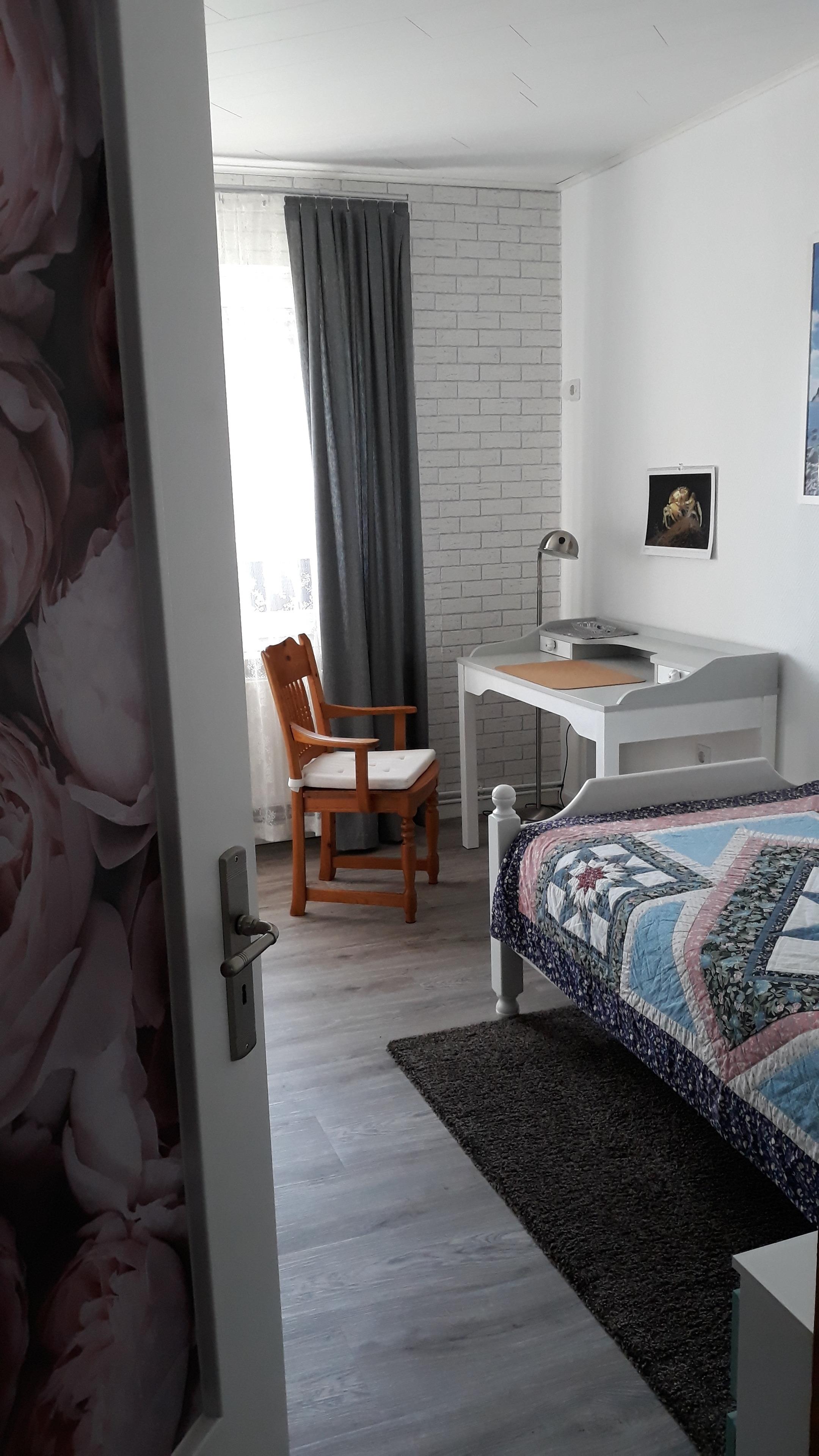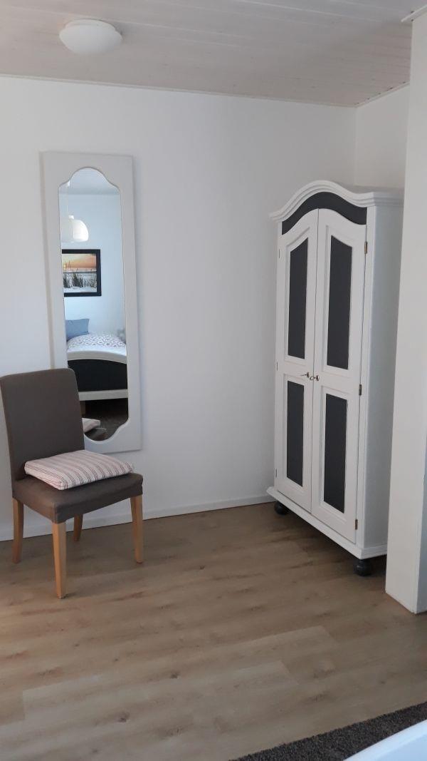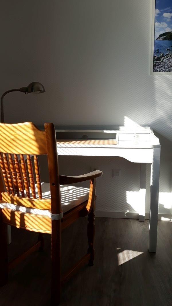 Die Ferienwohnung ist modern und liebevoll eingerichtet, außerdem ruhig gelegen und ebenerdig. Sie hat einen separaten Eingang. Die Küche ist gut ausgestattet. Es gibt zwei Schlafräume. In einem steht ein Doppelbett, im anderen ein Einzelbett sowie Schreibtisch. Das Wohnzimmer ist lichtdurchflutet, mit einem Esstisch und einer gemütlichen Sofaecke ausgestattet. Über das Wohnzimmer gelangen Sie auf die Südterrasse. Auf dieser befinden sich u.a. Sitzgelegenheiten und Markise. Im Bad gibt es eine Badewanne, Dusche sowie angenehme Fußbodenheizung und Handtuchheizung. Es gibt in der Ferienwohnung eine Waschmaschine. Im Carport finden Sie eine Wallbox, die Sie zum Aufladen Ihres E-Autos verwenden dürfen.