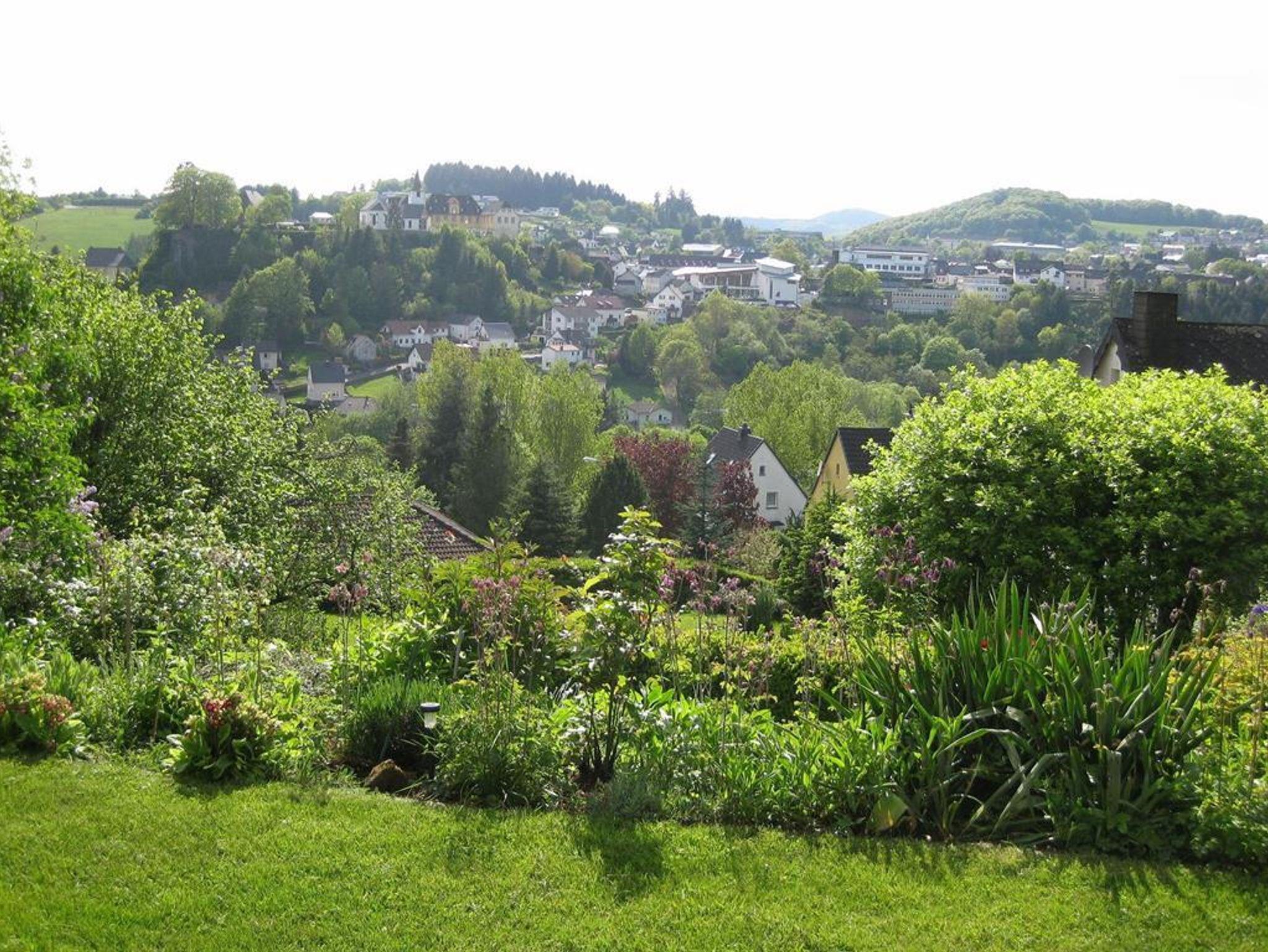 Schöner Panoramablick auf Daun u. die Eifellandschaft. Separater Eingang, überdachte Terrasse mit Gartenmöbeln, große Gartenanlage mit verschiedenen Sitzmöglichkeiten sowie Pavillon, Grillplatz, Parkmöglichkeit.