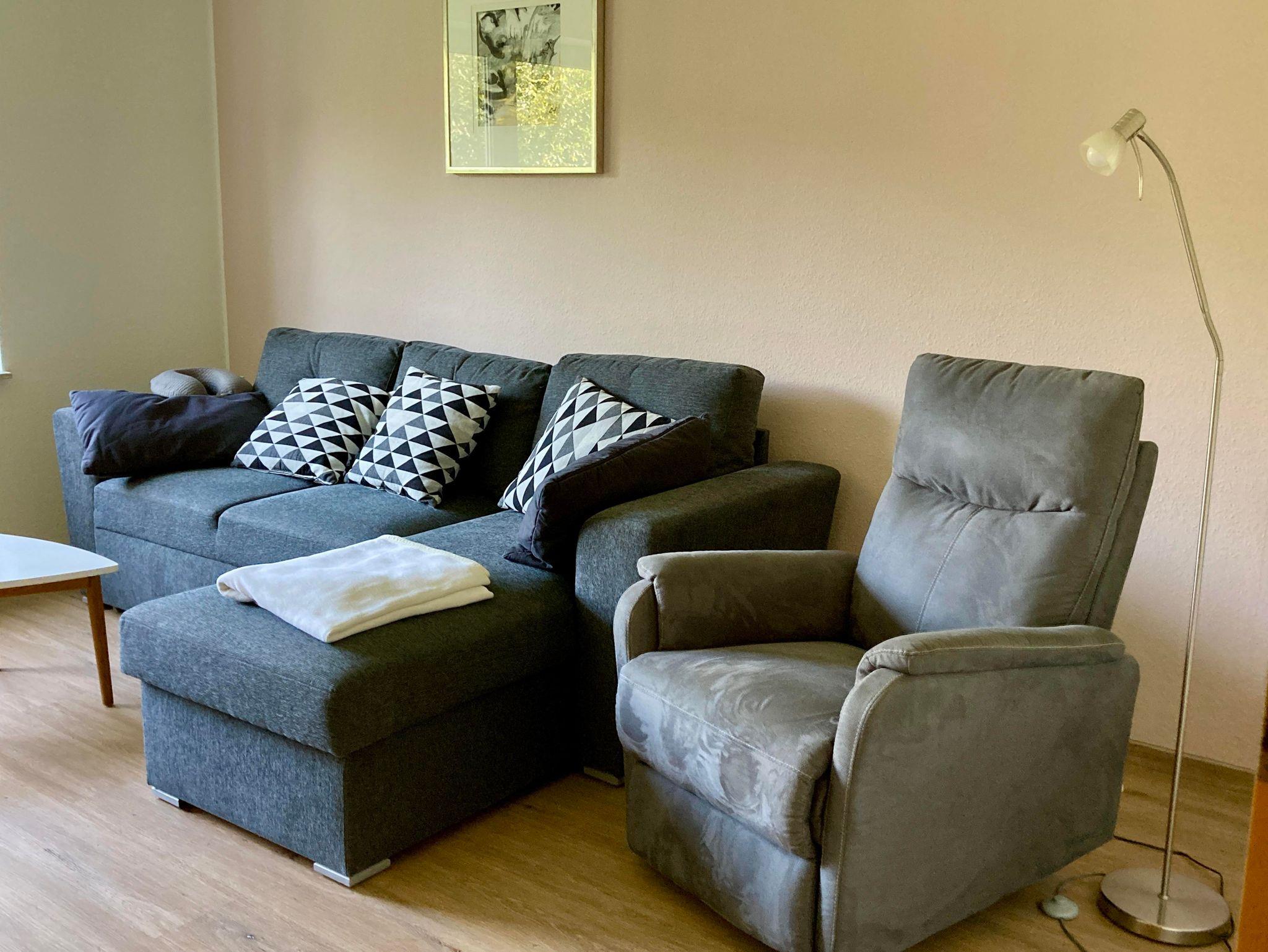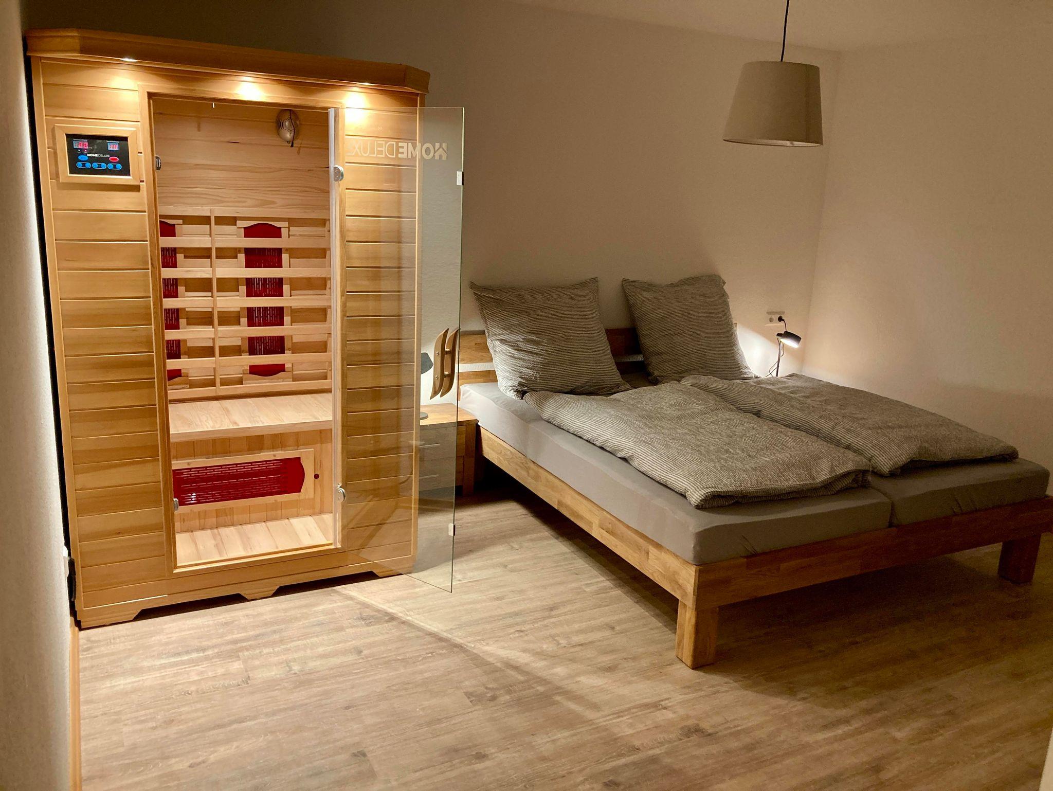 Die neu renovierte, 60 qm große Ferienwohnung bietet Platz für bis zu 4 Personen. Sie verfügt über WLAN, eine voll ausgestattete Küche, ein modernes Bad, ein Wohnzimmer mit Schlafcouch (140 x 195 cm) und TV (mit Amazon Fire TV-Stick) sowie ein Schlafzimmer mit Doppelbett. Highlight ist die Infrarotkabine. Im Garten gibt es Sitzgelegenheiten, und es sind Parkplätze sowie abschließbare Stellplätze für Fahrräder oder Motorräder vorhanden.