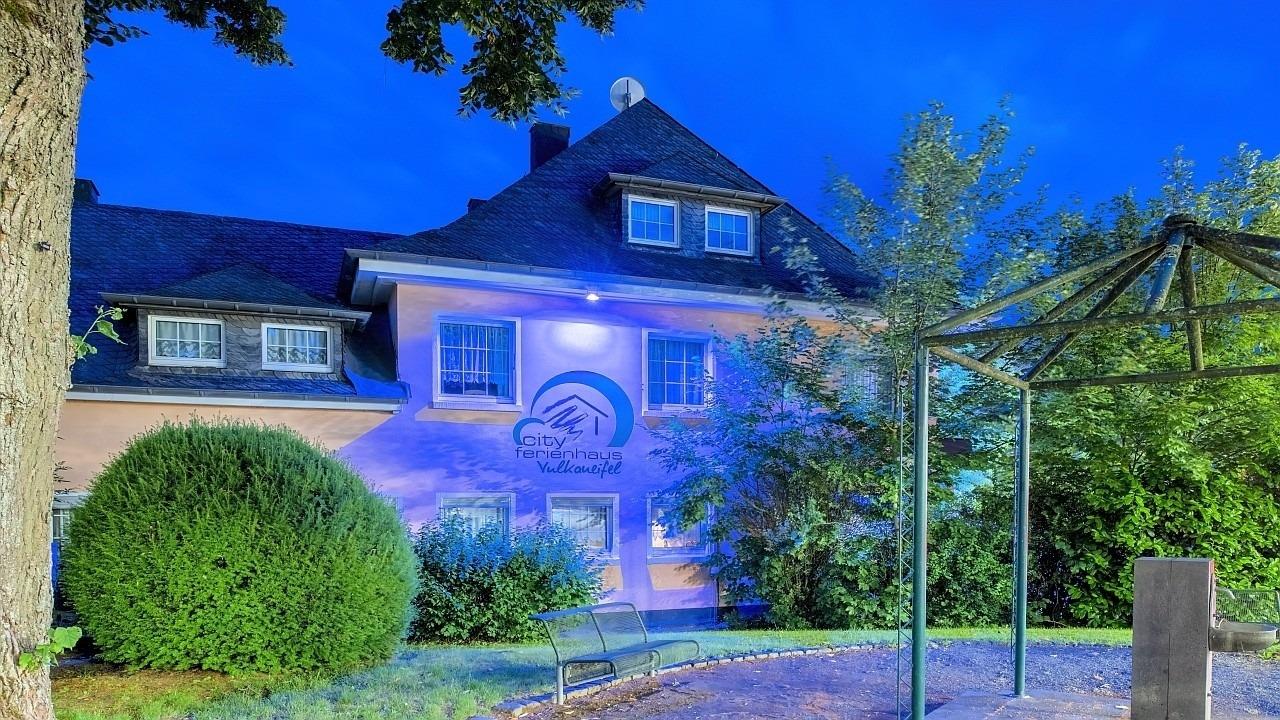 Das City Ferienhaus Vulkaneifel ist eine Kombination der beiden Ferienwohnungen "Daun" und "Vulkaneifel". Es kann daher als komplettes Haus mit 185 qm Wohnfläche, Außenterasse und Gartenanlage (hinter dem Haus) gebucht werden.