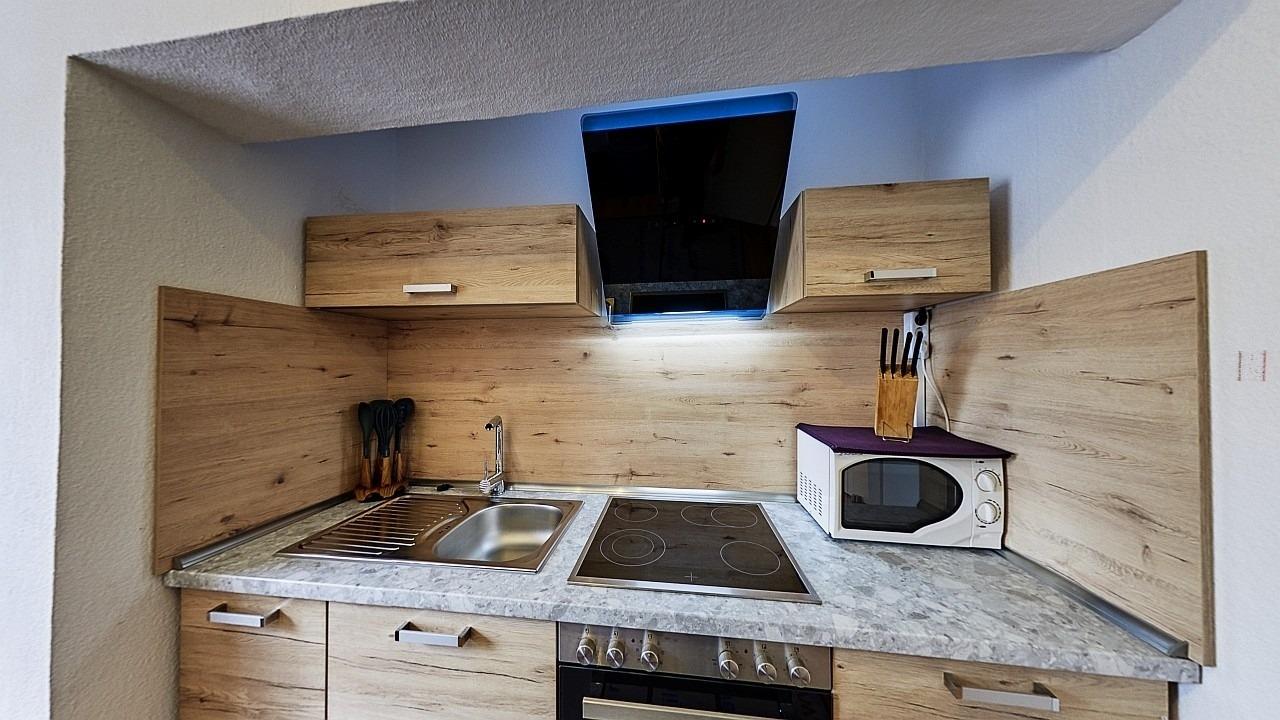 Zur Ausstattung gehören: 2 x Mikrowelle, 4 Kaffeemaschinen (2 x Pad, 2 x Filter), 2 Toaster und 2 Wasserkocher. Töpfe und Pfannen sowie Besteck und Geschirr für die höchstmögliche Personenzahl sind selbstverständlich vorhanden. Kinderbetten und Hochstühle können kostenlos bereitgestellt werden.