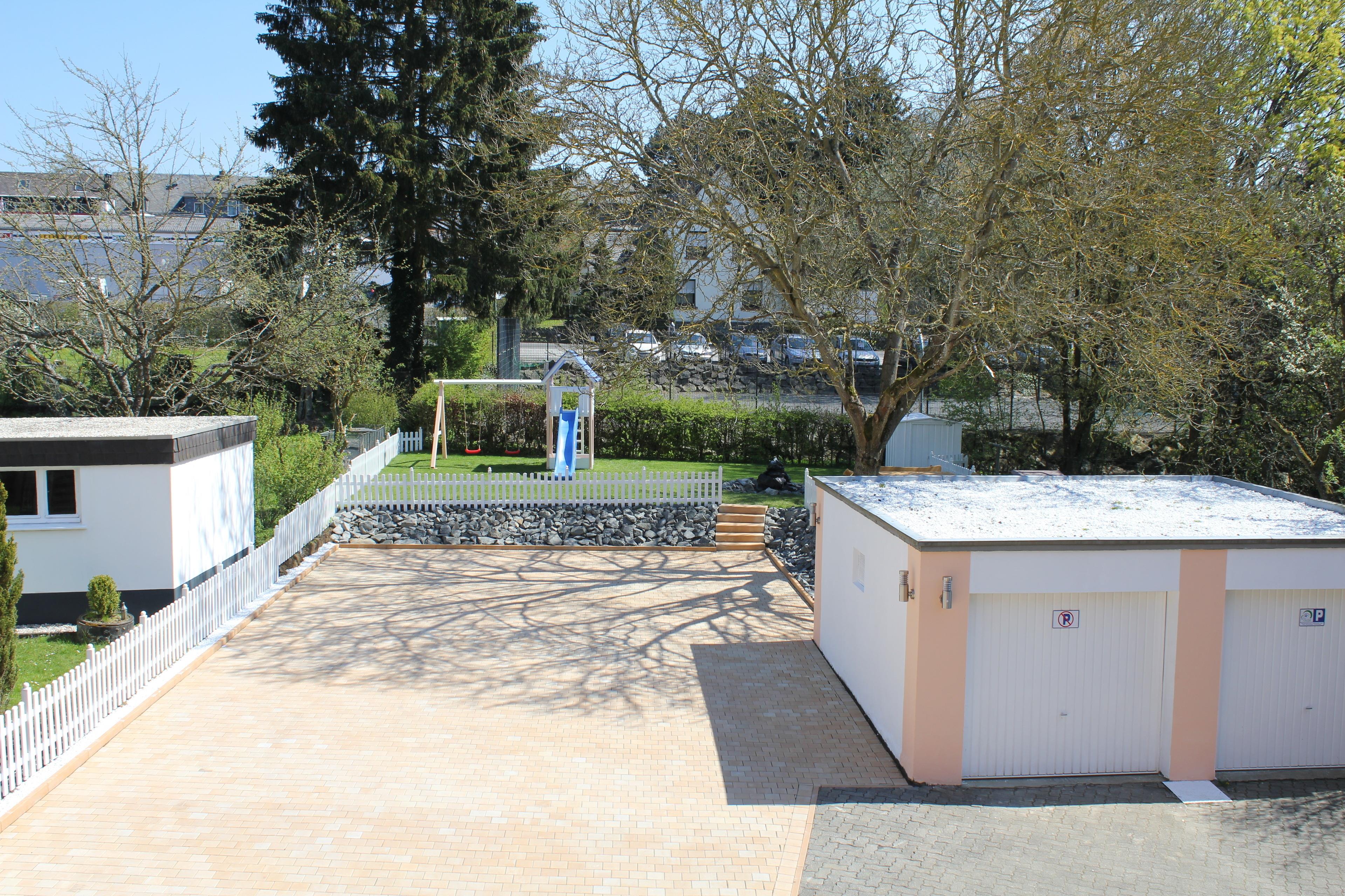 Die Parkplätze befinden sich direkt hinter dem Haus, im Hof.