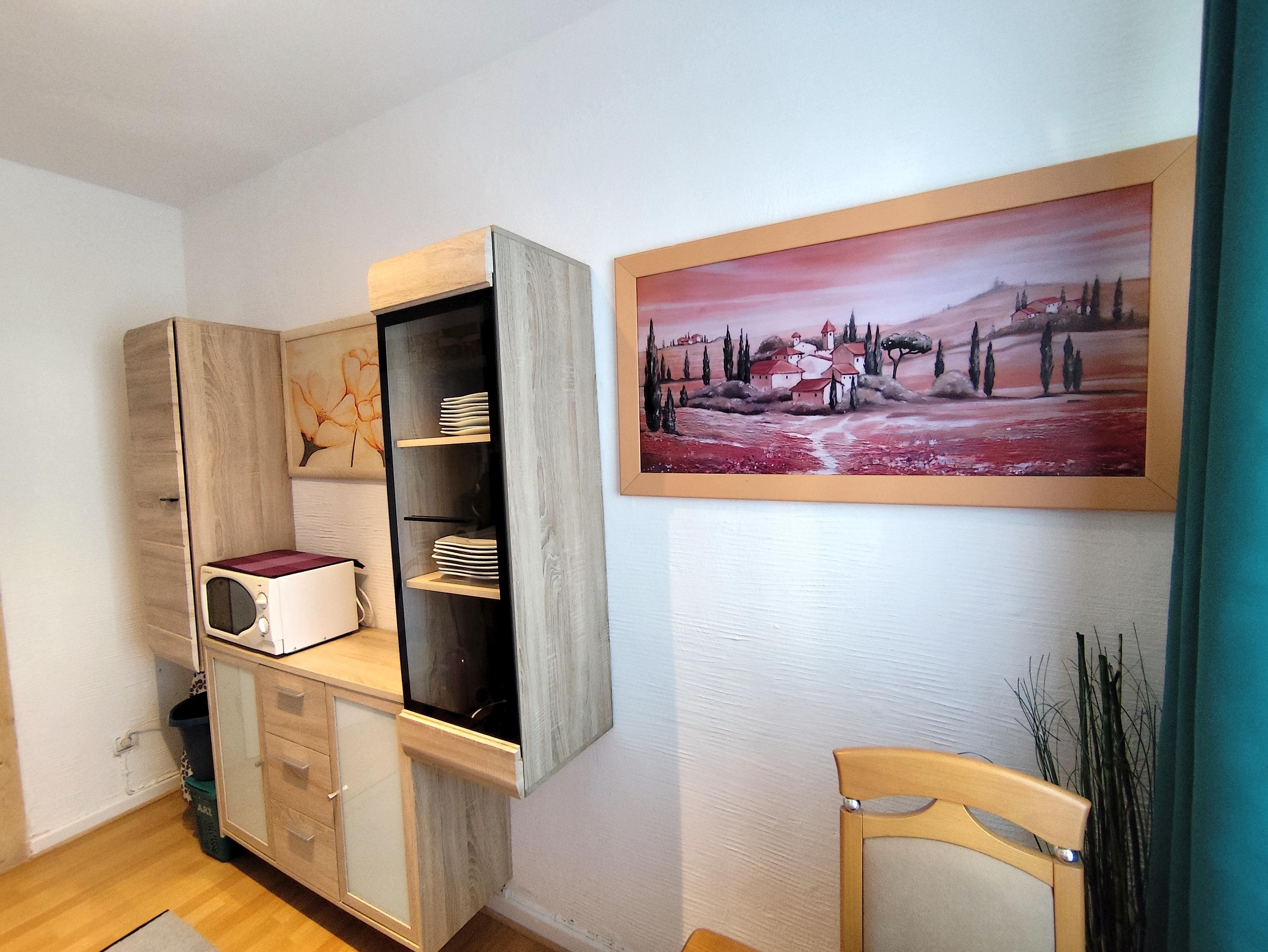 Zur Ausstattung der Ferienwohnung gehören: Mikrowelle, 2 Kaffeemaschinen (Padmaschine Bosch Tassimo und eine Filtermaschine), Toaster und Wasserkocher. Töpfe und Pfannen sowie Besteck und Geschirr für die höchstmögliche Personenzahl sind selbstverständlich vorhanden. Kinderbett und Hochstuhl können kostenlos bereitgestellt werden.