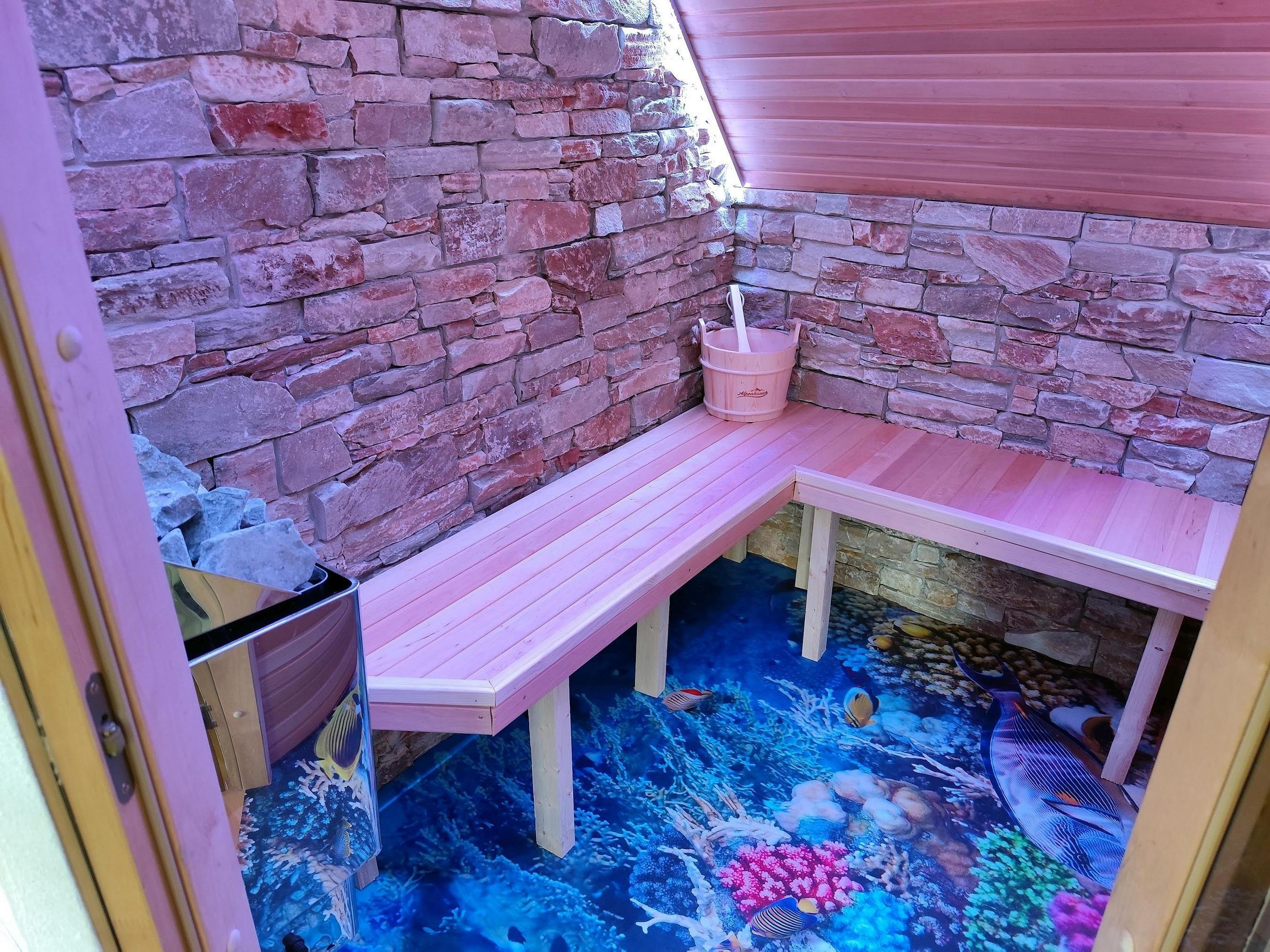 Am Außenbereich des Hauses ist liebevoll und aufwendig ein Zierkiesbereich angelegt worden. Mit Springbrunnen und einem kleinen Wasserfall. Das Haus und die Außenalagen sind am Abend und nachts sehr attraktiv in einem Farbenspiel mit LED Strahlern angestrahlt.