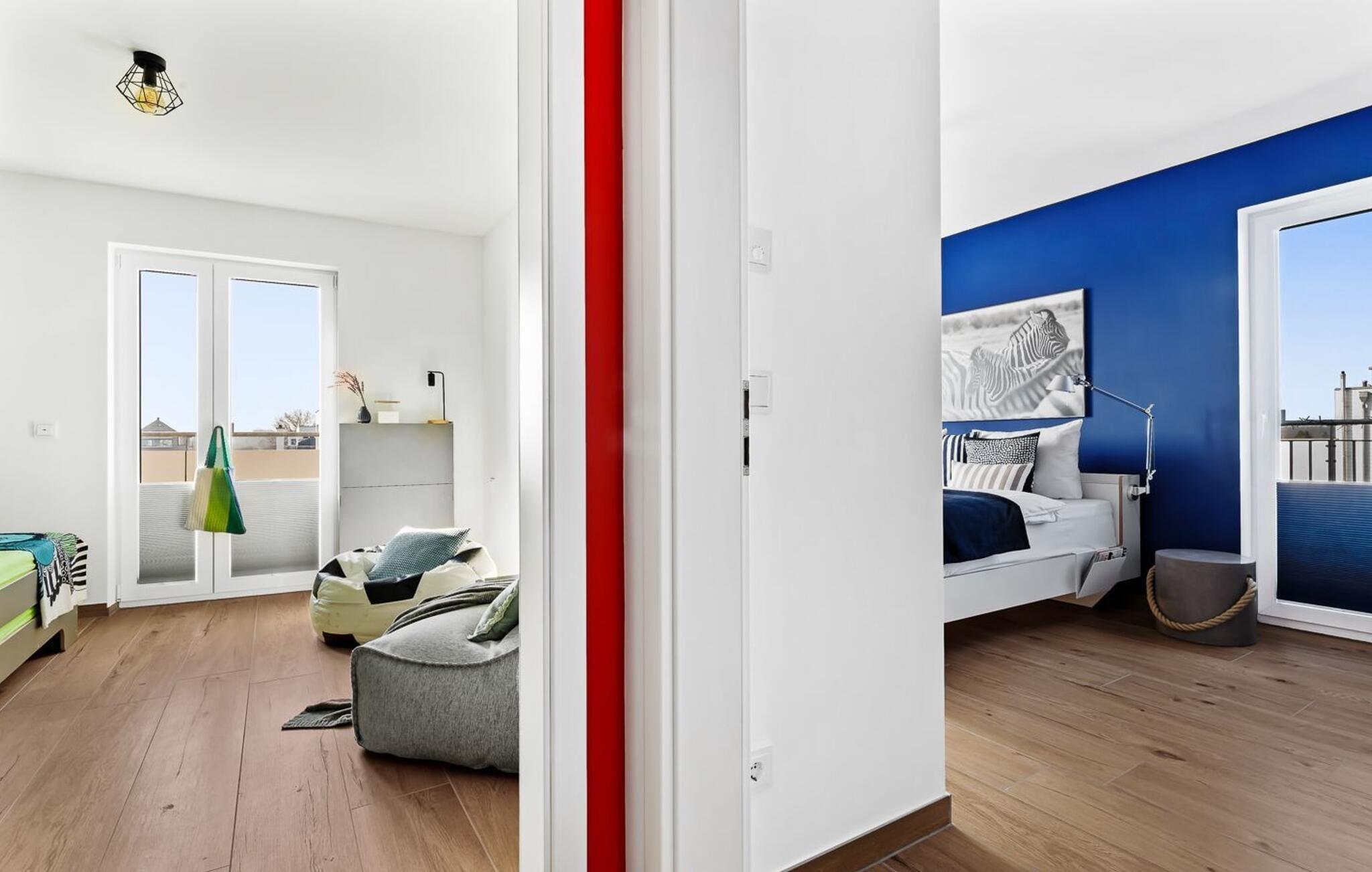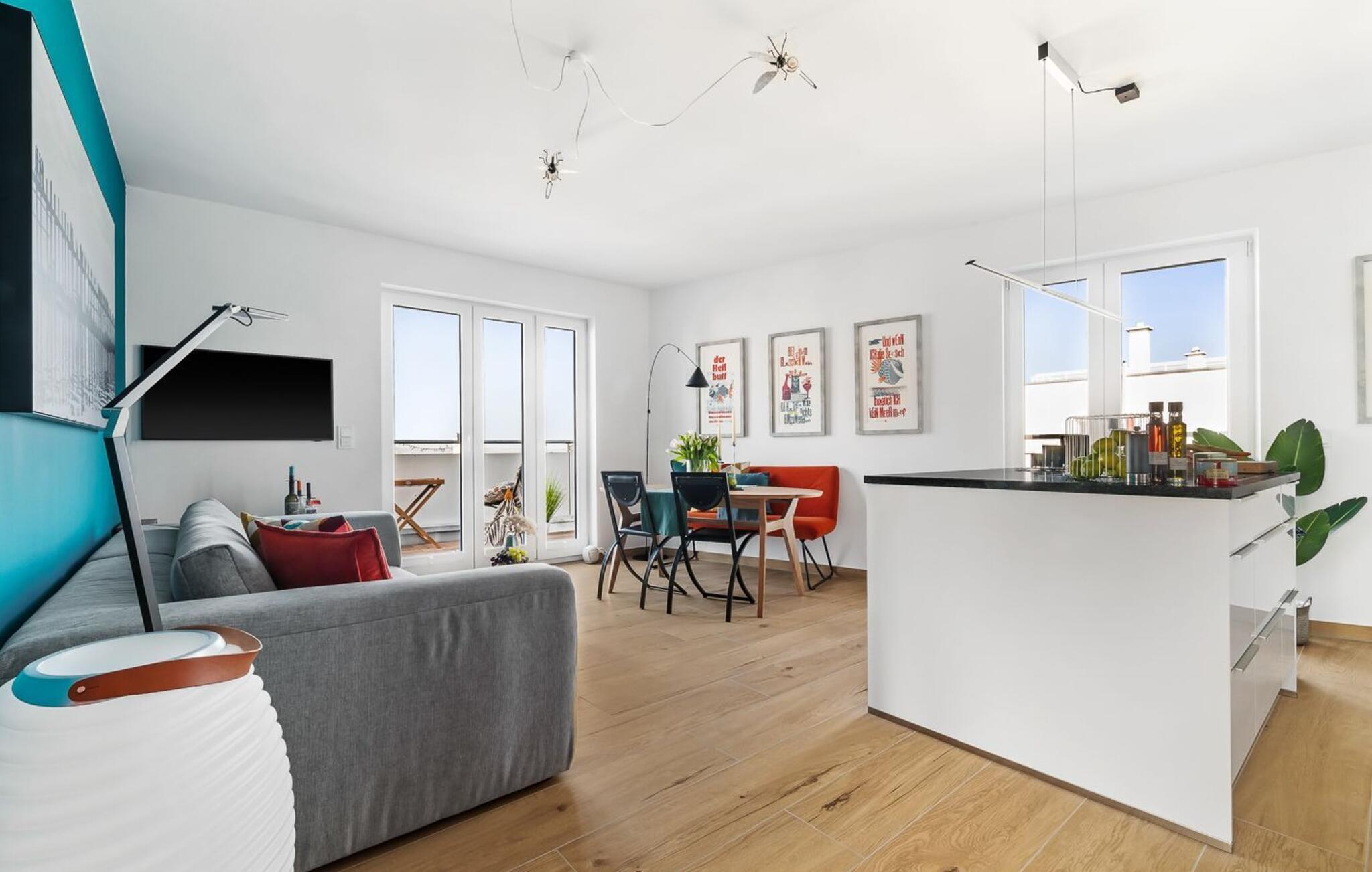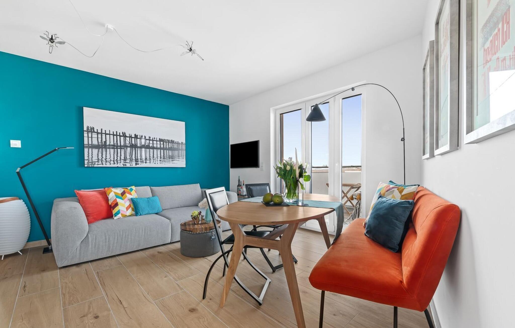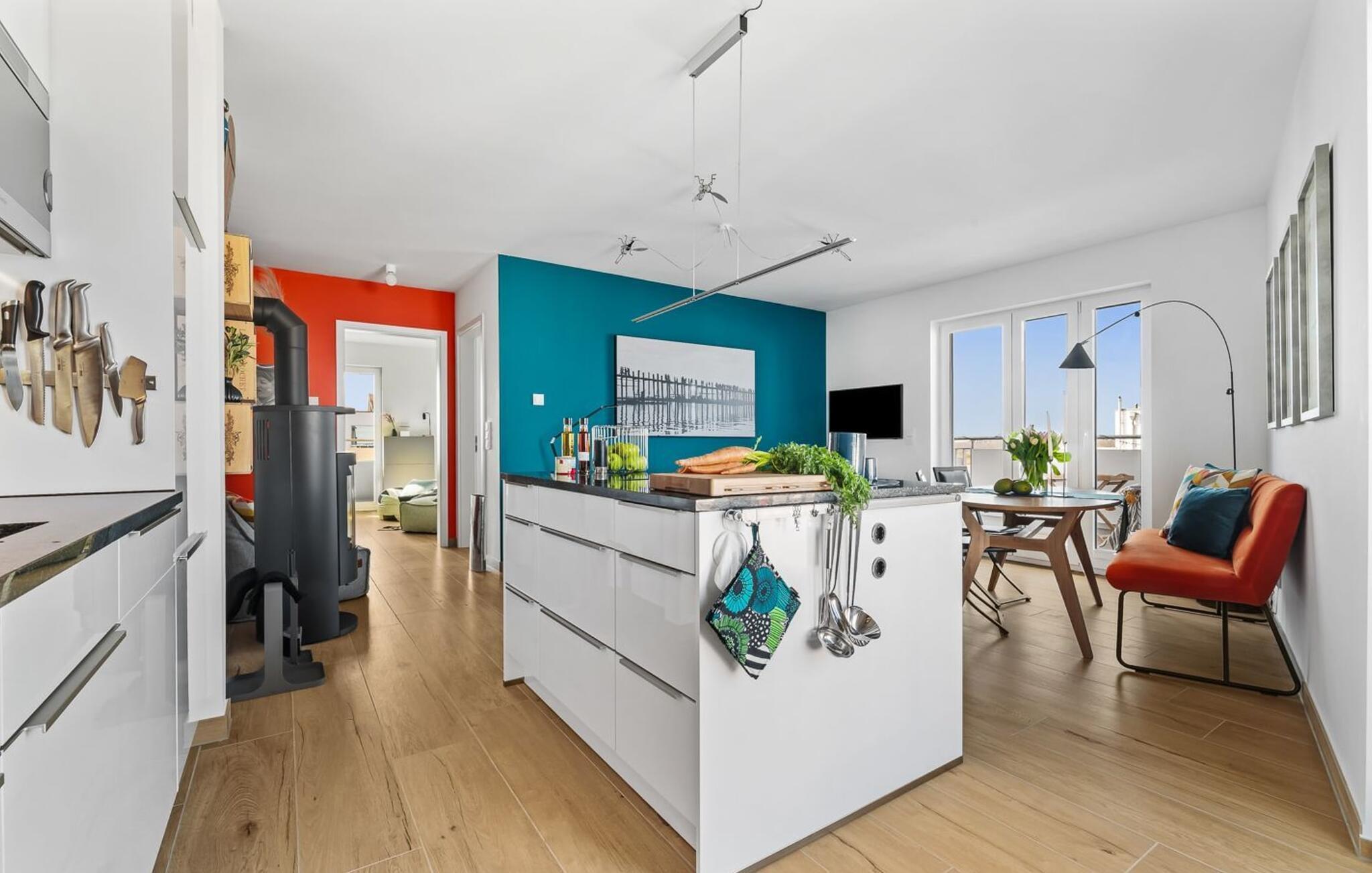 Oplev ferie i sin smukkeste form i den eksklusive ferielejlighed dæk 2 i det fortryllende Østersøresort Olpenitz. Denne førsteklasses indkvartering tilbyder ikke kun en fantastisk beliggenhed, men også en atmosfære, der vil forkæle jeres sanser. Fordyb jer i en verden af afslapning og nyd et uforglemmeligt ophold ved Østersøen og i den idylliske Schlei-region. Den rummelige ferielejlighed har plads til op til 4 personer. Her vil familier og venner finde det ideelle tilflugtssted for at opleve Østersøens skønhed fuldt ud. Gå ind gennem gulv-til-loft vinduer og bliv mødt af et lyst opholdsrum. Gulvvarmen giver hyggelig varme, mens den åbne stue/alrum med indbydende pejs indbyder til at blive hængende. Dæk 2 har 2 soveværelser og et badeværelse med sauna, en sand wellness-oase til afslappende timer. Højdepunktet i lejligheden er uden tvivl den omgivende balkon, som byder på en betagende udsigt over Slei og Østersøen. Her kan I i jeres personlige tilflugtssted slutte dagen af i en strandstol og opleve solnedgangens maleriske farver over vandet. Ferielejligheden er ikke kun et sted for afslapning for voksne, men er også designet til at være familie- og kæledyrsvenlig. En tremmeseng sikrer en ubekymret ferie og jeres firbenede ven er meget velkommen her. Et supermarked med et bageri kun 5 minutters gang væk giver mulighed for praktisk selvforplejning. To strande, hver kun 15 minutter væk til fods, inviterer jer til forfriskende Østersøbade og lange gåture. I har jeres egen håndkærre til jeres rådighed, hvormed I kan udforske det omkringliggende område på en eventyrlig måde. I finder også strandspil i lejligheden, som I kan tage med til vandet. Selve Ostsee Resort Olpenitz tilbyder en bred vifte af aktiviteter og fritidsmuligheder. Fra egen lystbådehavn til smukke strande og en bred vifte af vandsportsaktiviteter. Men der er også meget at opdage væk fra vandet. Schlei-regionen glæder sig over maleriske landskaber, idylliske landsbyer og talrige cykel- og vandrestier. Dæk 2 kombinerer luksus, komfort og Østersøens rene skønhed for at skabe en uforglemmelig helhedsoplevelse. Her, midt i disse drømmeagtige rammer, vågner ønsket om en ferie - et sted, der inspirerer jeres sanser og skaber varige minder. Velkommen til jeres personlige gemmested ved Østersøen! Vores favoritsted Kaffe smager bedst om morgenen ved terrassebordet i Østersøluften. Bemærk venligst: OstseeResort Olpenitz er meget populært, og der bygges fortsat i parken. Ikke desto mindre kan I se frem til en 5-stjernet standard og et førsteklasses ophold. Byggeaktiviteterne kommer ikke til at forstyrre jer på ferien, og derfor gives der ikke yderligere afslag i prisen.