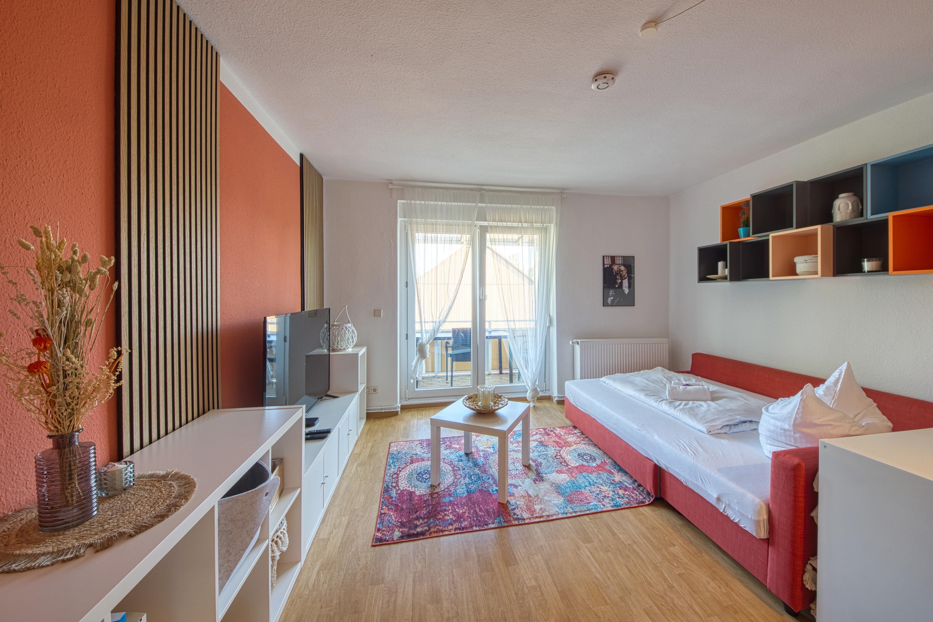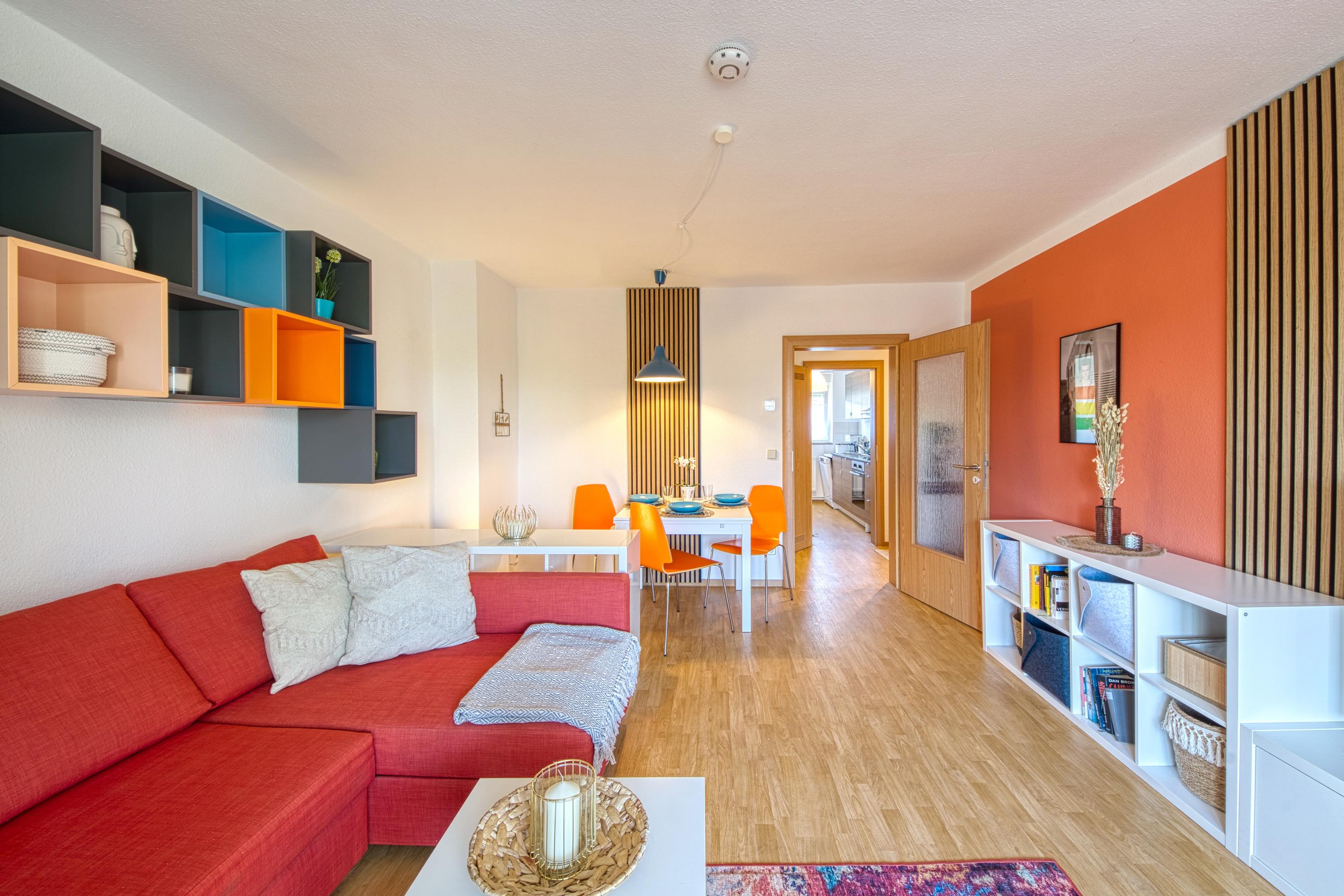 Entspannung gibts im Apartment Karli mit großem Balkon und toller Aussicht im ruhigen Delitzsch. Ideal für Arbeiter / Geschäftsreisende oder große Familien / Gruppen. Selbst-Check-In und Selbstversorgung leicht gemacht durch die vollausgestattete Küche mit Geschirrspüler, Herd/ Backofen, Waschtrockner, Kühl-/ Gefrierschrank. Zwei Schlafräume mit jeweils zwei hochwertigen Box-Spring-Betten und ein großes Schlafsofa bieten Platz für bis zu 6 Gäste. Wäsche-/Handtuch- und Reinigungsservice inklusive