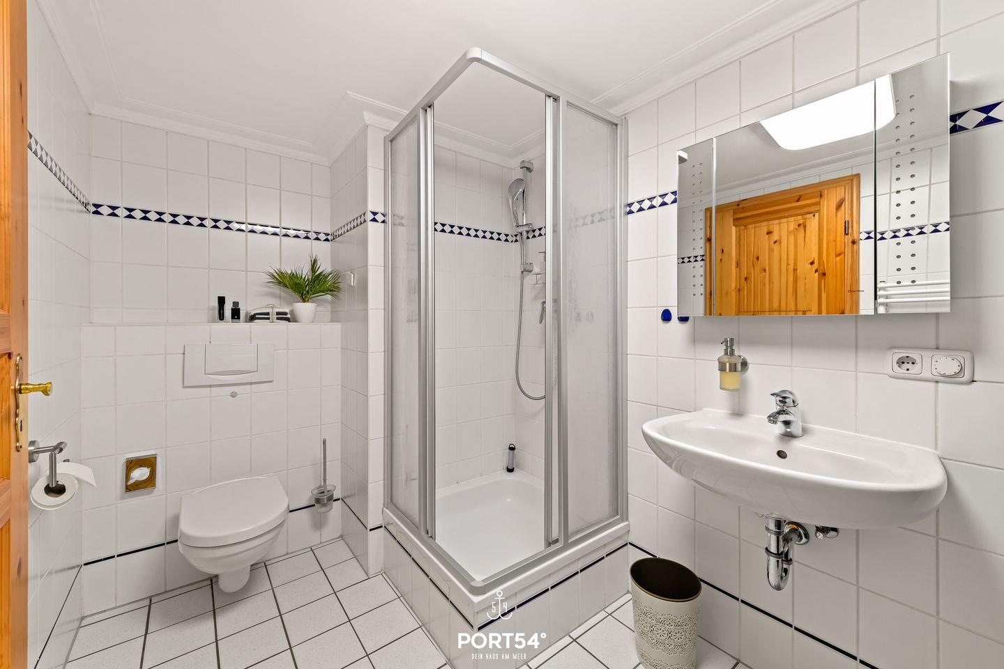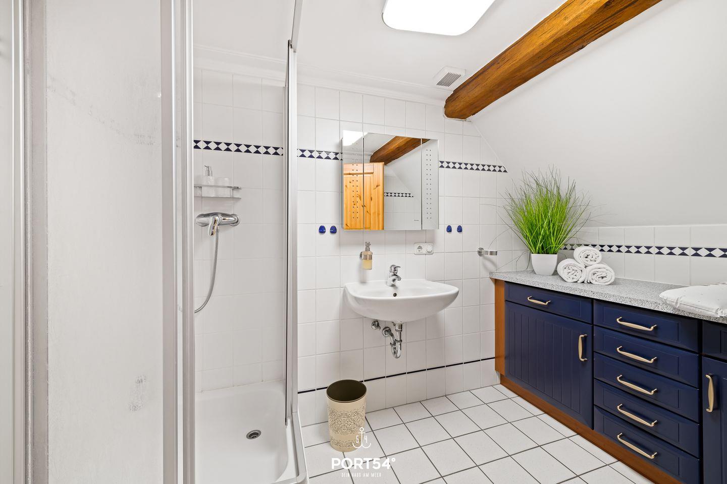 Im Erdgeschoss finden Sie ein Badezimmer mit ebenerdiger Dusche, WC, Waschbecken und Föhn. Im Obergeschoss befindet sich das Wellness Bad, hier haben wir eine Dusche, Whirlwanne, WC, 2 Waschbecken, Föhn, Smart TV und einen Balkon. Das dritte Bad ist am Schlafzimmer ,,Abenddämmerung'' und bietet eine Dusche, WC, Waschbecken und Föhn. Im Schwimmbad finden Sie noch ein Gäste WC.