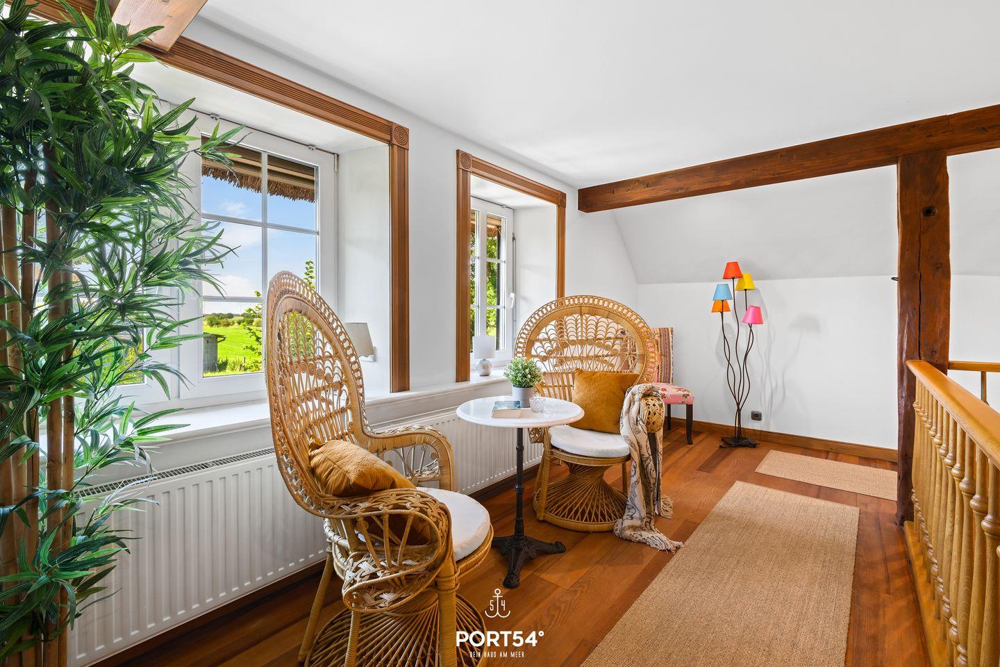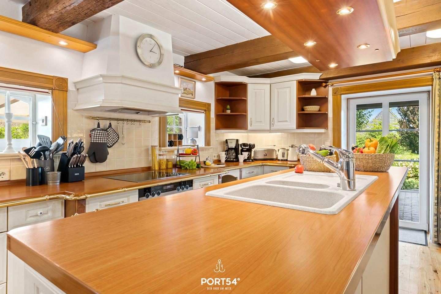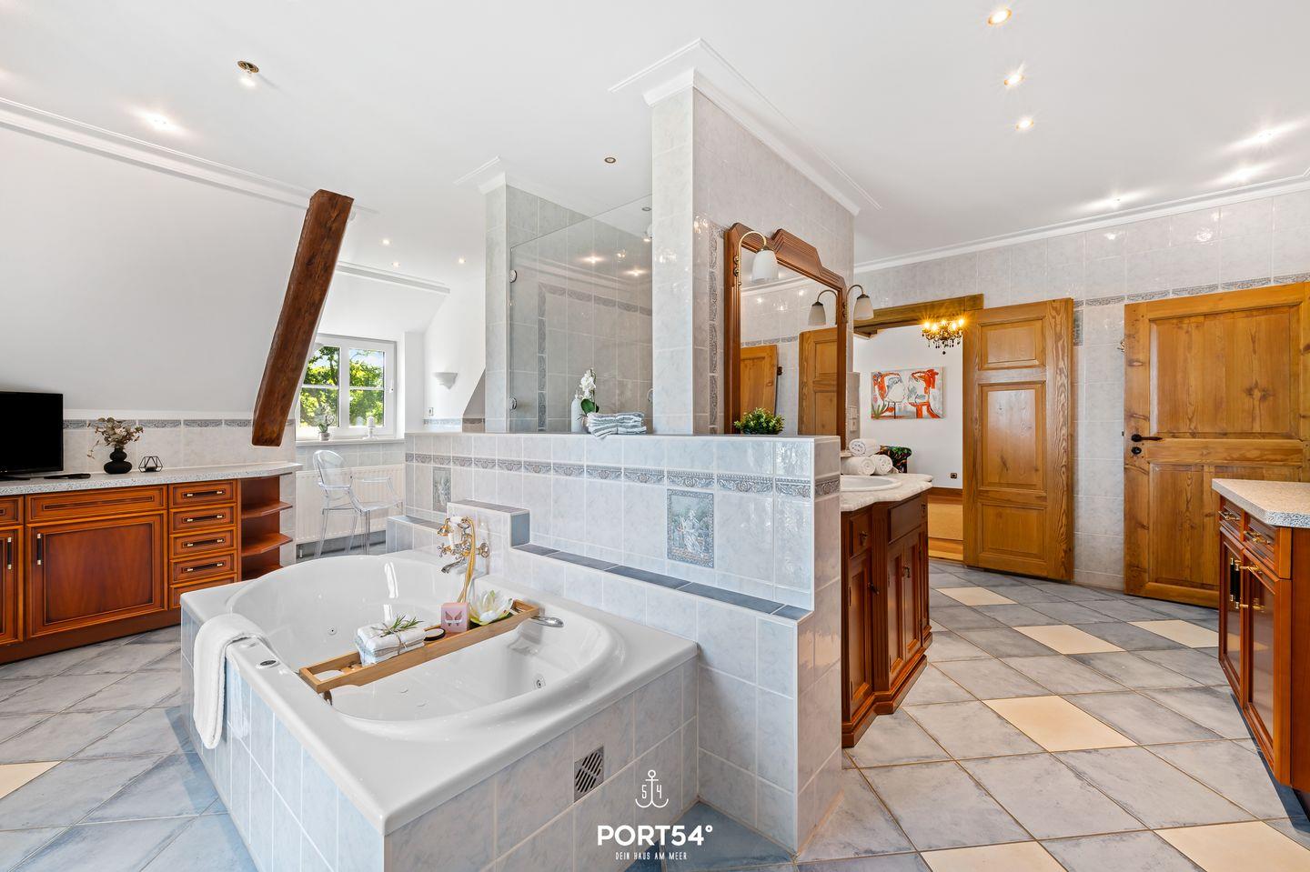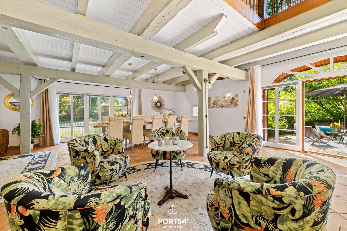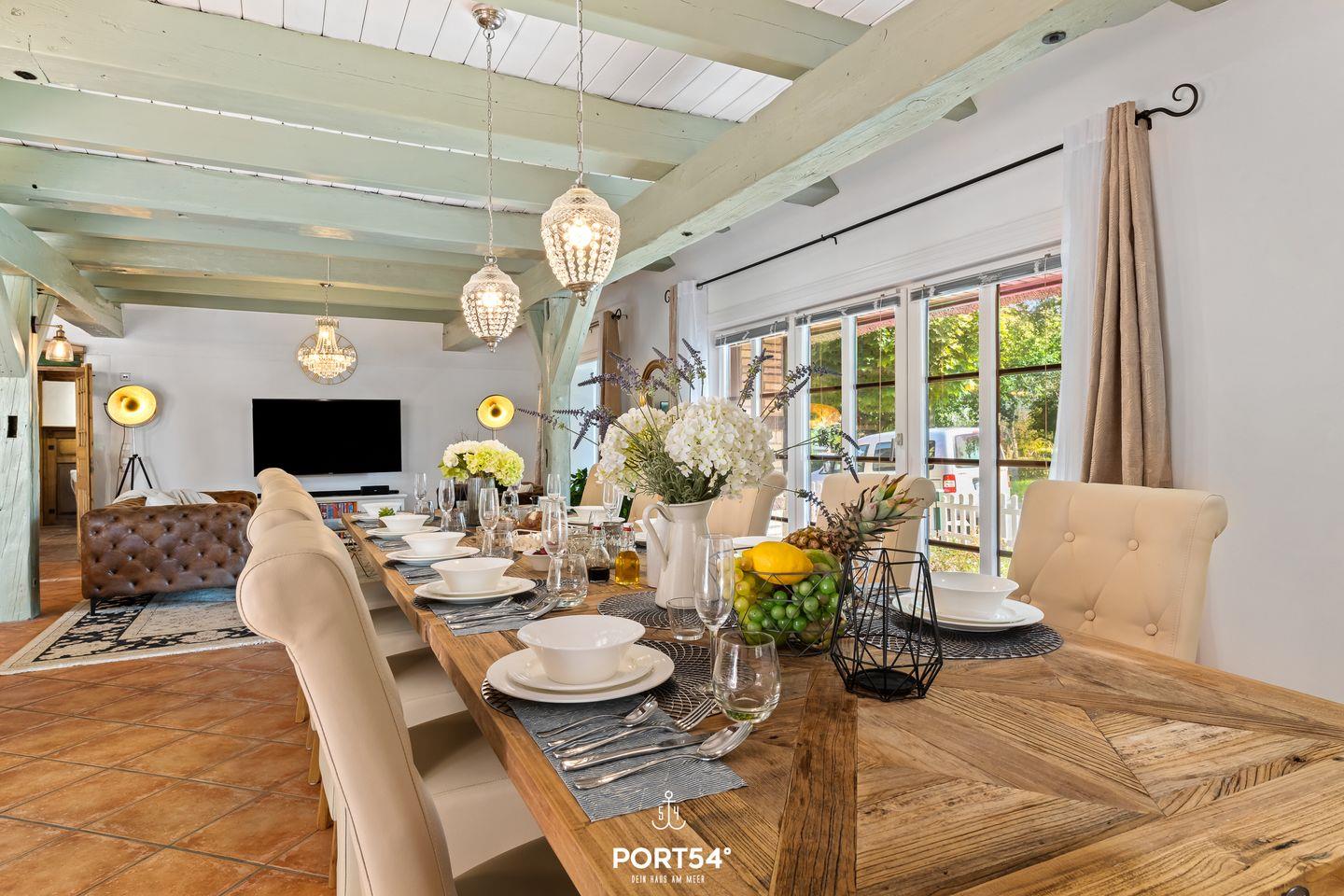 Auf 570m² finden bis zu 12 Personen in dieser außergewöhnlichen Ferienresidenz Platz. Sie finden 2 Wohn-/ Gemeinschaftsräume, 6 Schlafzimmer, 3 Bäder mit Dusche, Badewanne und Whirlpool, eine große, moderne Küche mit Kochinsel. Die Einrichtung im Haus ist sehr hochwertig und es wurde viel Wert auf schicke Designer Möbel- & Wohnaccessoires gelegt. In der großen Wohnhalle spendet ein Kachelofen mollige Wärme nach einem schönen Spaziergang an der Eider. Im Obergeschoss gibt es auch noch eine große Galerie zum zurückziehen und entspannen.